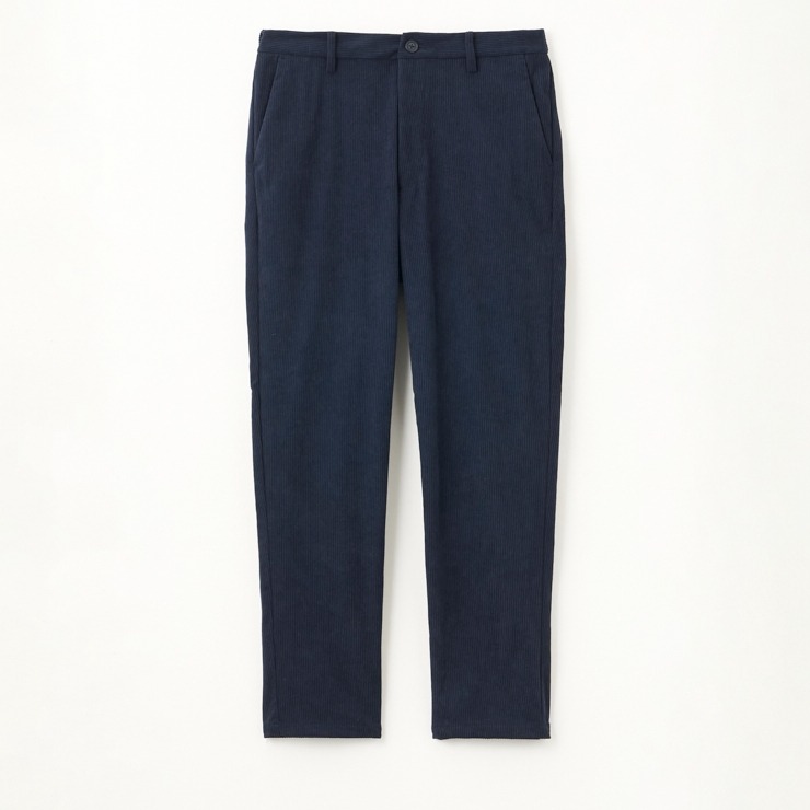 中畝のポリエステル100%のコーデュロイ で重すぎない適度なweightで着回ししやすく、コーディネートしやすいシルエットのノータックパンツです。