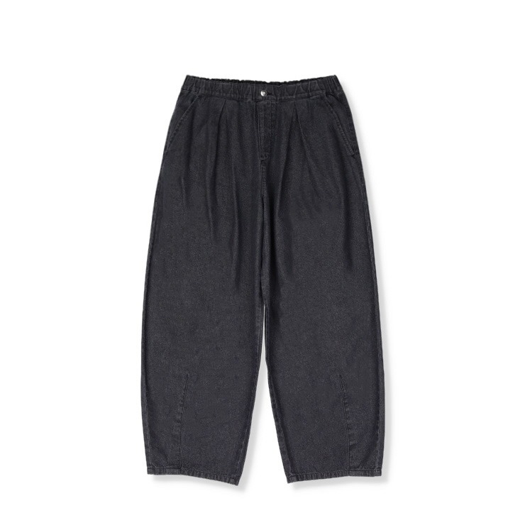裾ダーツ入りで丸みシルエットが特徴のバレルパンツ。