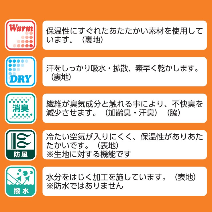 保温性に優れた素材で、寒い季節の運動をサポート。