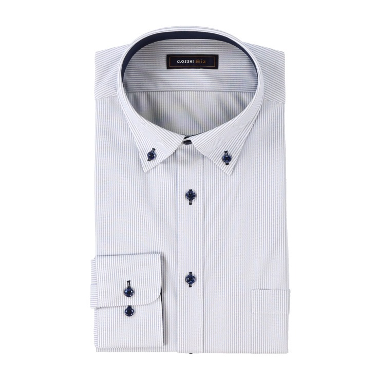 メンズ ワイシャツ(アオストライプ・ボタンダウン)