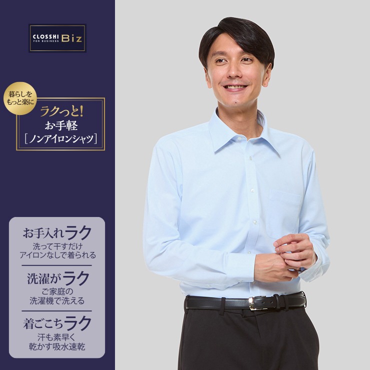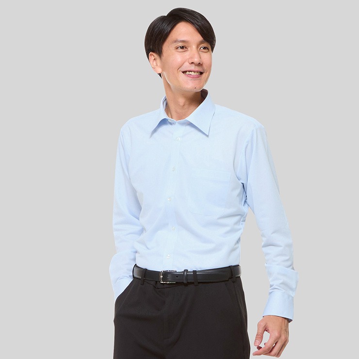 【M~LL】 メンズ ニットシャツ(サックス・セミワイド)