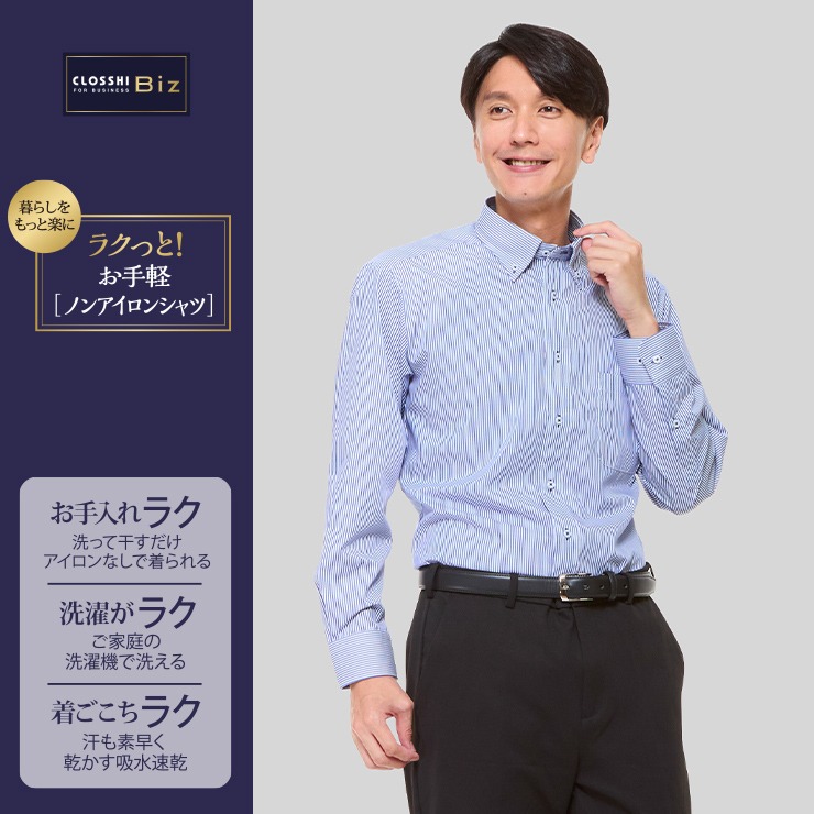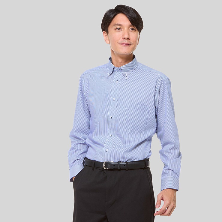 メンズ シャツ(ブルーストライプ・ボタンダウン)