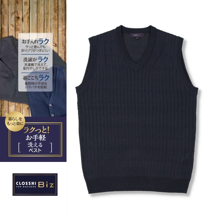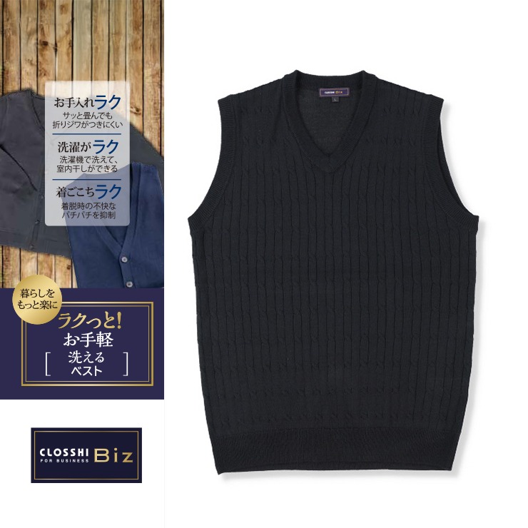 「ラクっと!お手軽」シリーズより紳士ビジネスニットケーブルVネックベストが新登場!