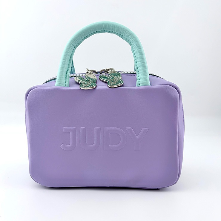 かわいいファスナーチャームが付いたボストン型のポーチです。
