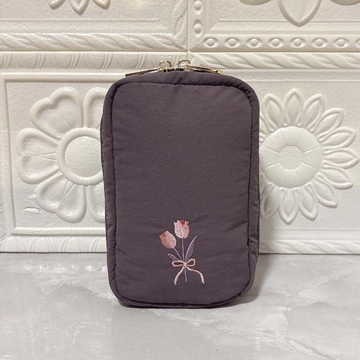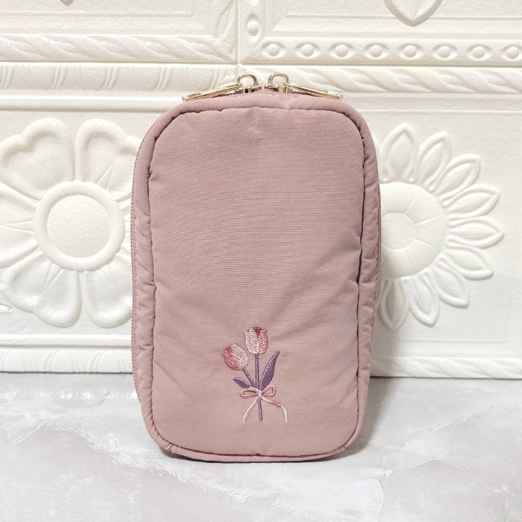 前面の刺繍がかわいい縦型ポーチ♪