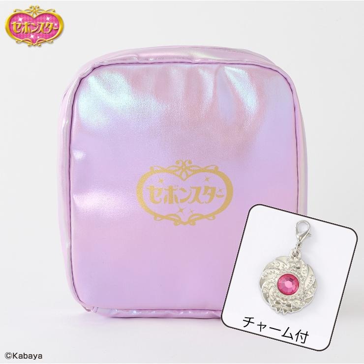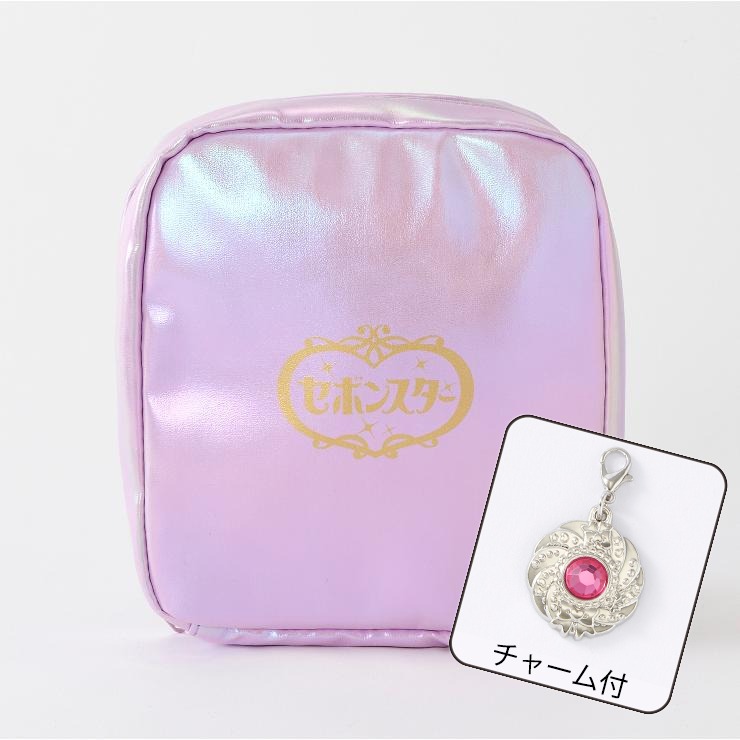上下二段に分かれている7個のポケット付きで中身が見えやすく取り出しやすいポーチ!きらきら輝く、コラボオリジナルチャームタイプジュエリーセボンスター付き☆お気に入りのアイテムとジュエリーセボンスターで自分だけのオリジナルアイテムに!