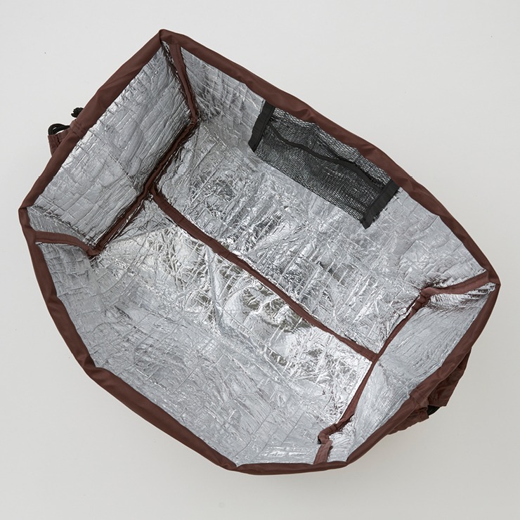 お買い物に便利なサイズ感で、内側生地は保冷素材を採用。