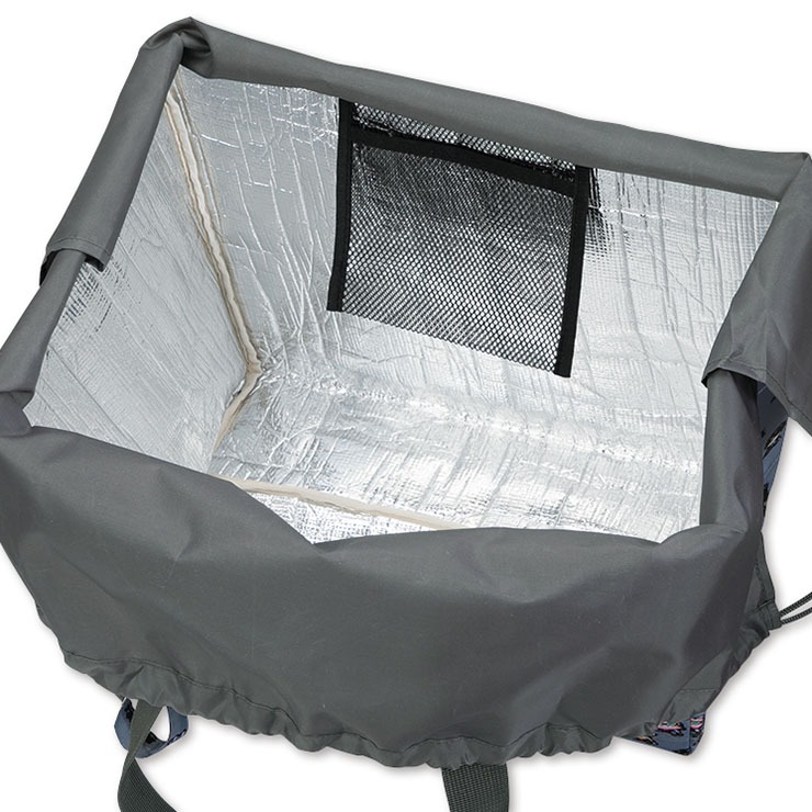 折り畳み用のスナップボタンが付いているので、お買い物にピッタリです。