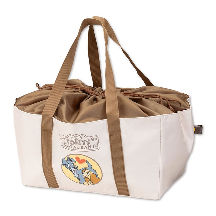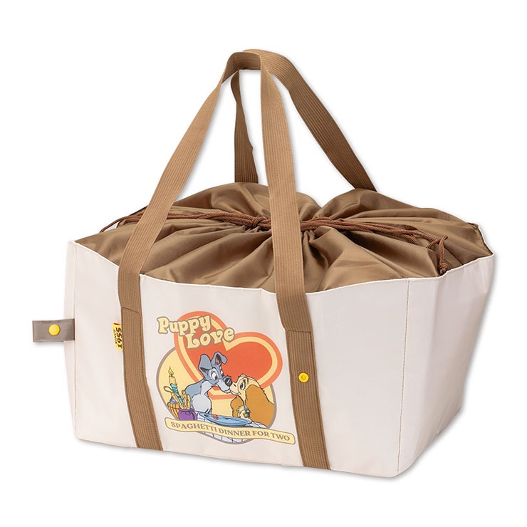 大きめサイズで収納力抜群。肩掛けできる長めのハンドル。巾着を閉じれば中身の飛び出し防止に!