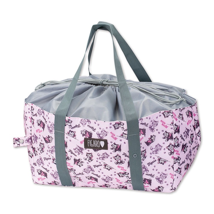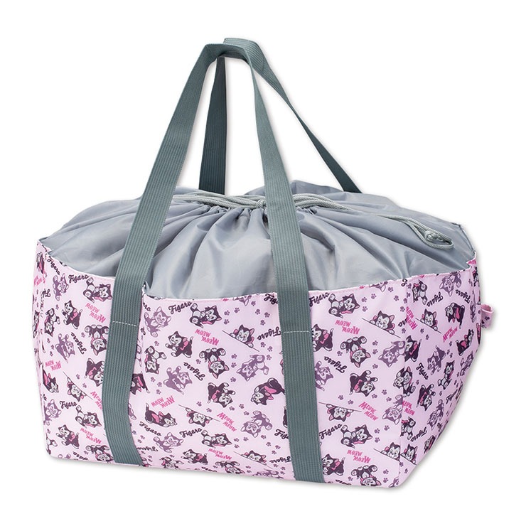 大きめサイズで収納力抜群。肩掛けできる長めのハンドル。巾着を閉じれば中身の飛び出し防止に!