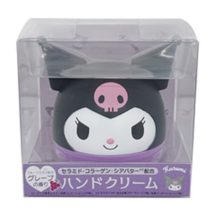サンリオデザインで容器も可愛いハンドクリーム。保湿成分のセラミド、コラーゲン、シアバター配合でしっとりすべすべになります。香りはグレープ。