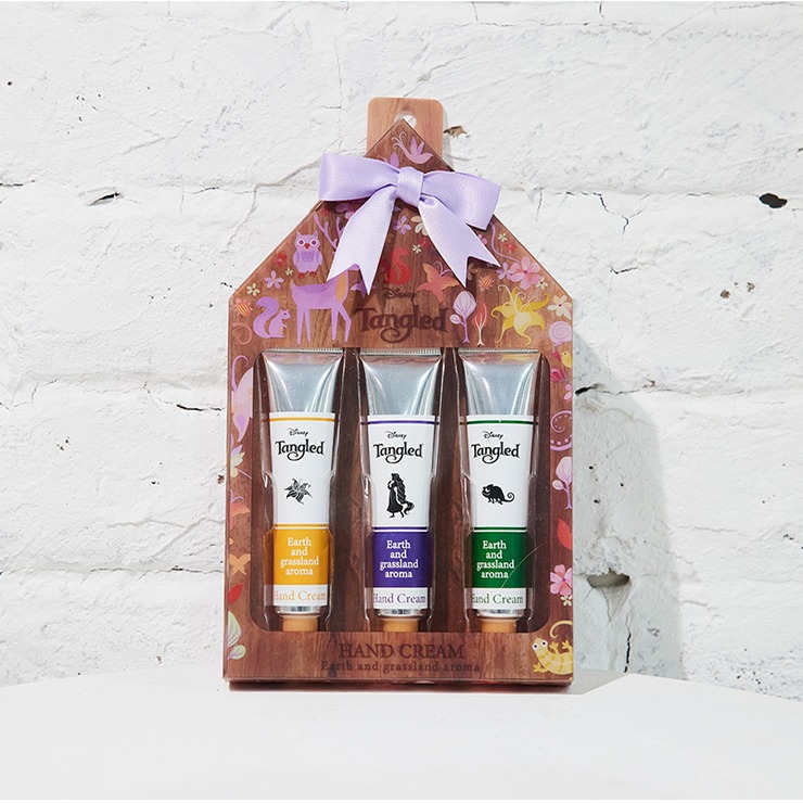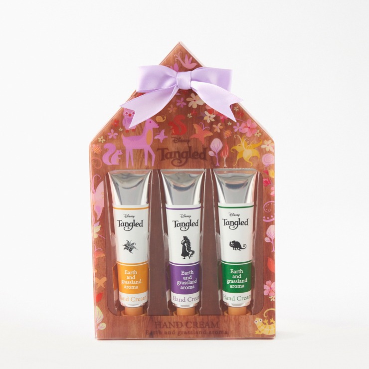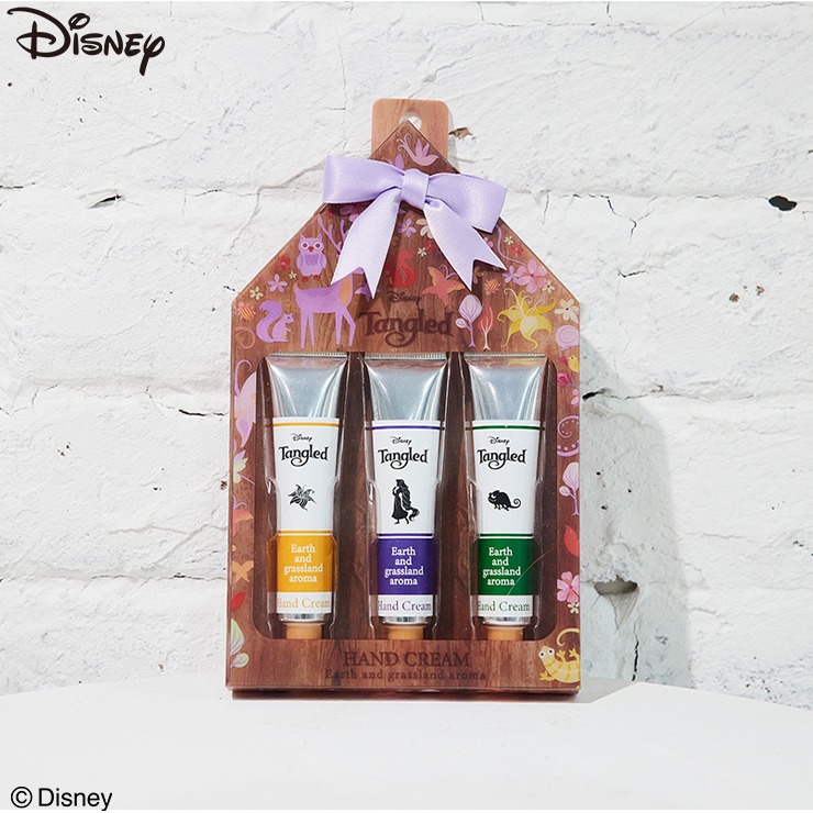 ディズニー映画『塔の上のラプンツェル』の絵具をイメージしたハンドクリーム3本セット(大地と草原の香り)です。