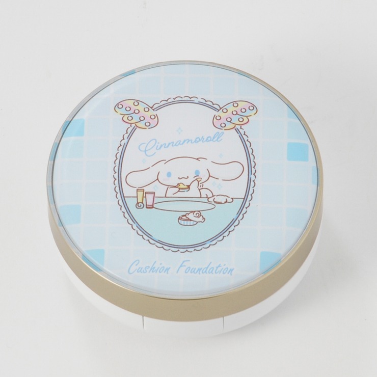 可愛いサンリオキャラのクッションファンデーションでどの肌色にも合わせやすいナチュラルライト色。容器にパフもミラーもついて使いやすい!