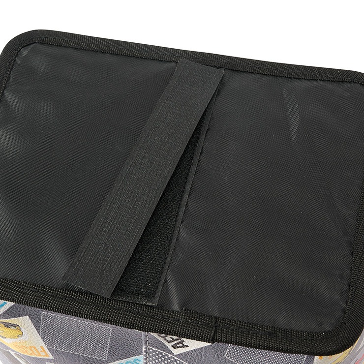 底面には転倒防止の重りとフロアマットの起毛に張り付く面ファスナーが付いているため、車内でも安心してご利用いただけます。