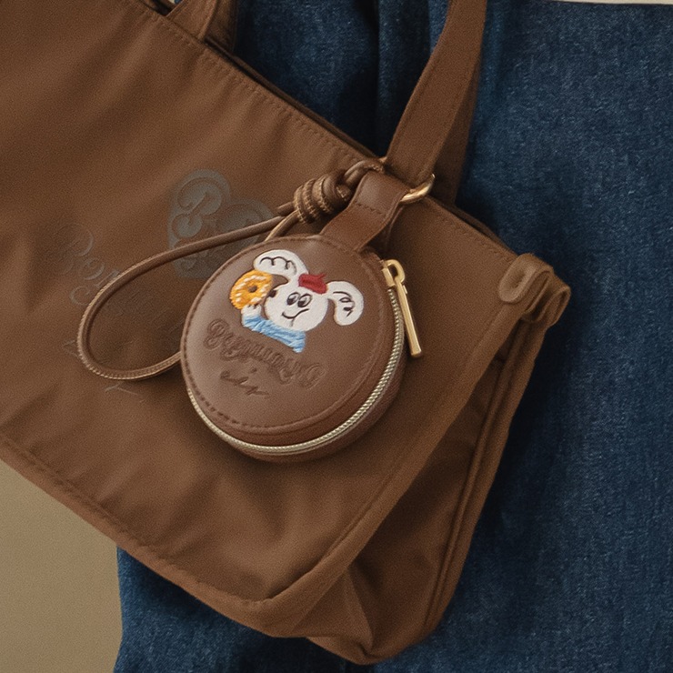 BOMILLDANGのオリジナルロゴ刺繍入りのポーチチャームです。内装にポケットがありアクセサリーを入れることもできます。バッグのポイントチャームとしてもご使用いただけます!