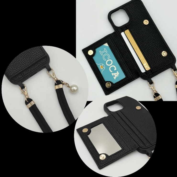 必要なもの''これひとつ''に。ミラー付多機能iPhoneショルダー。