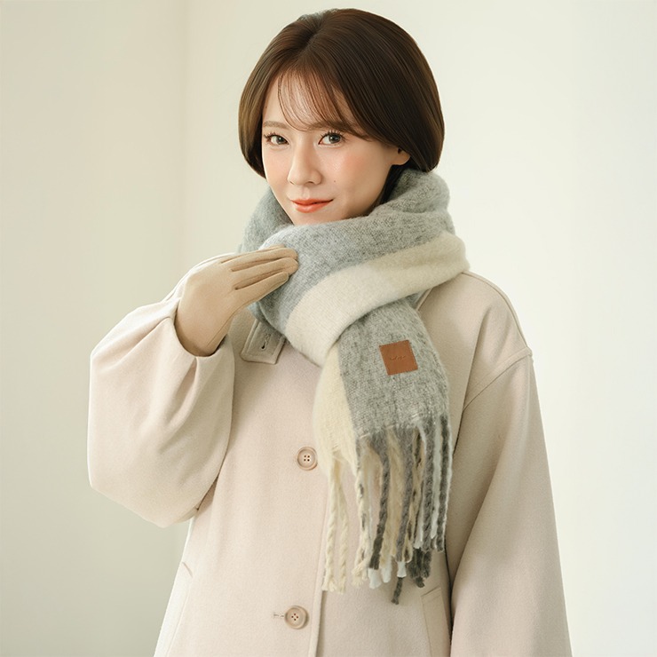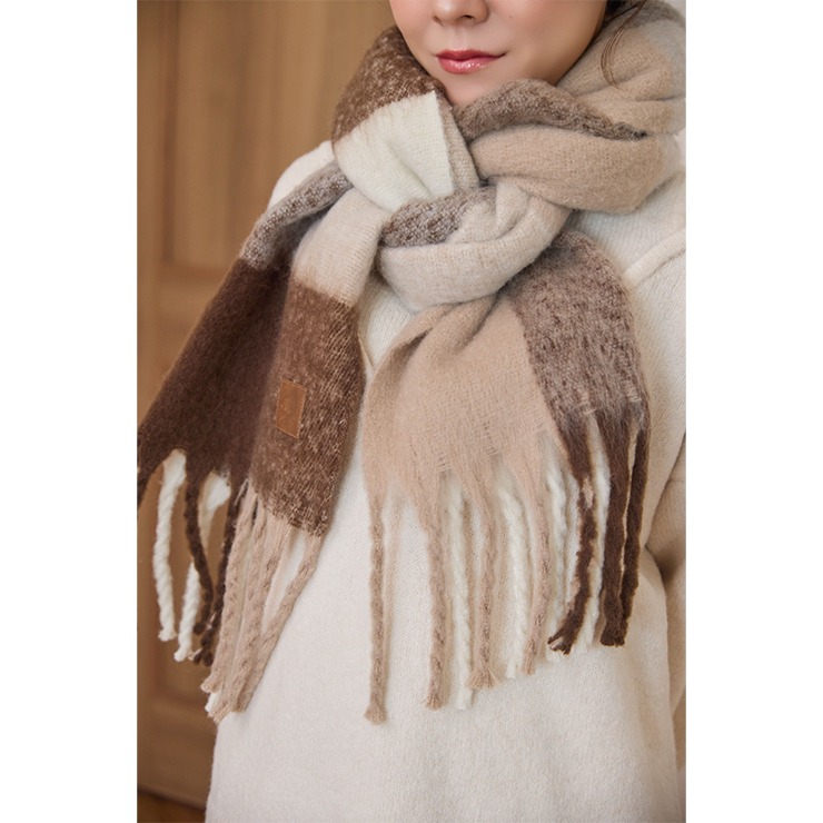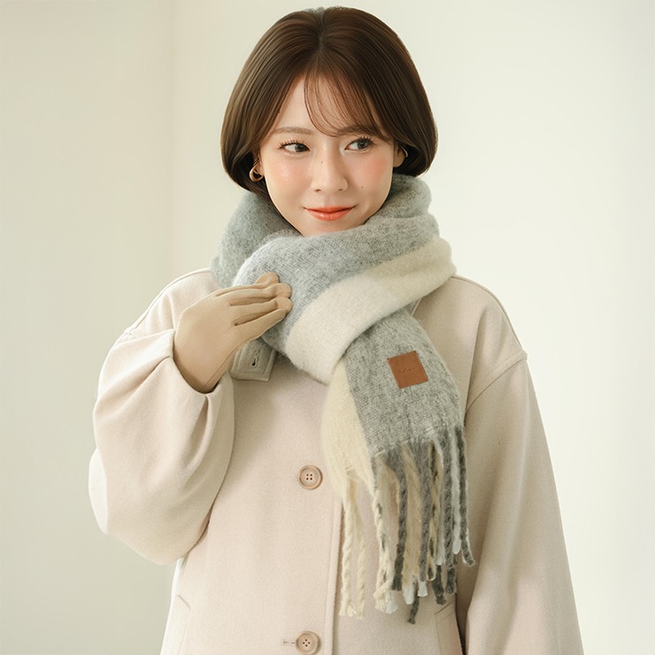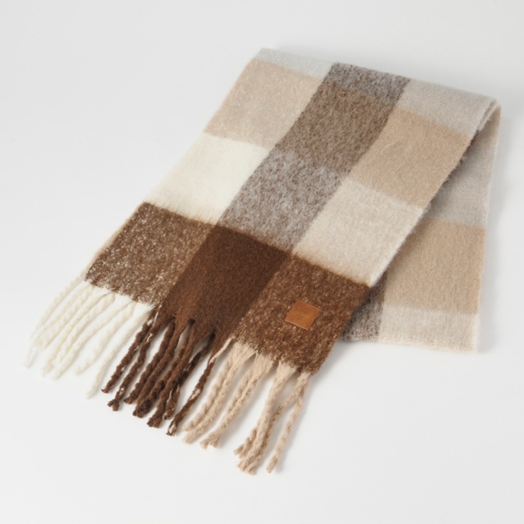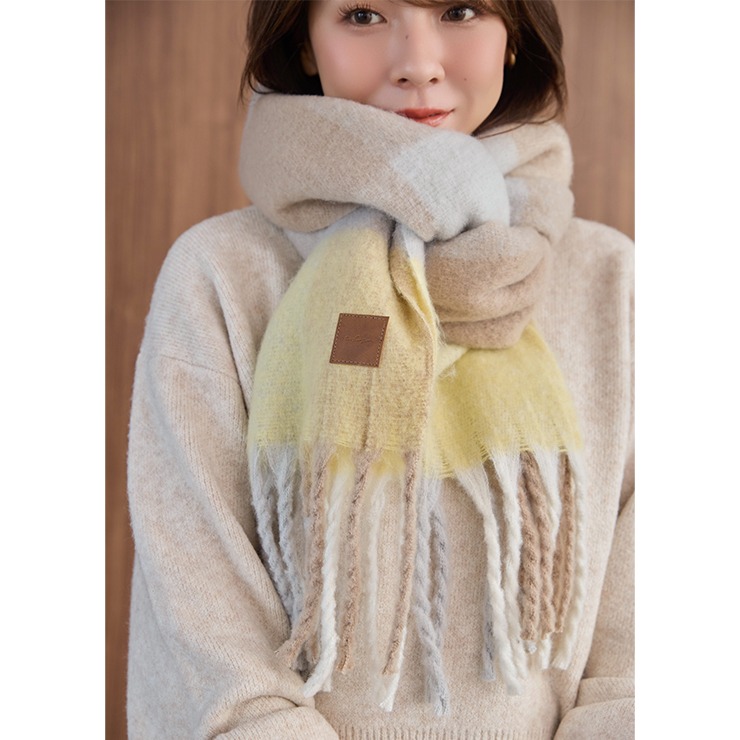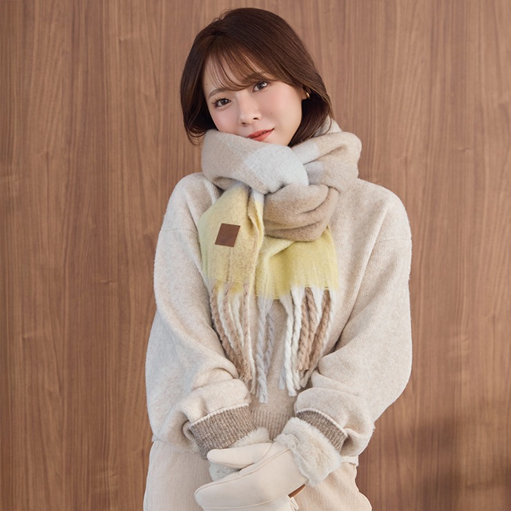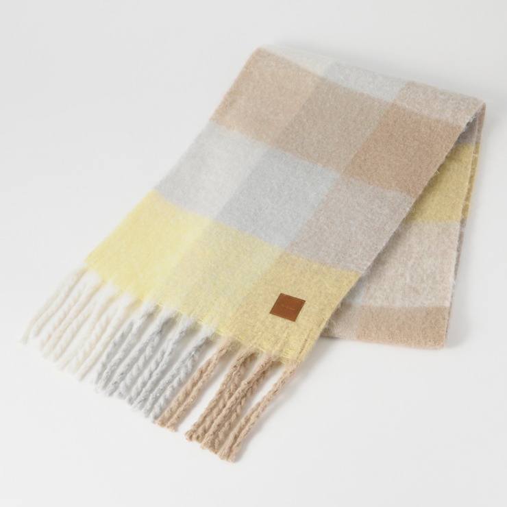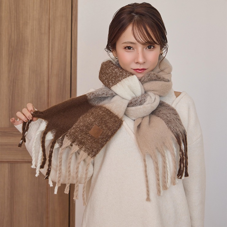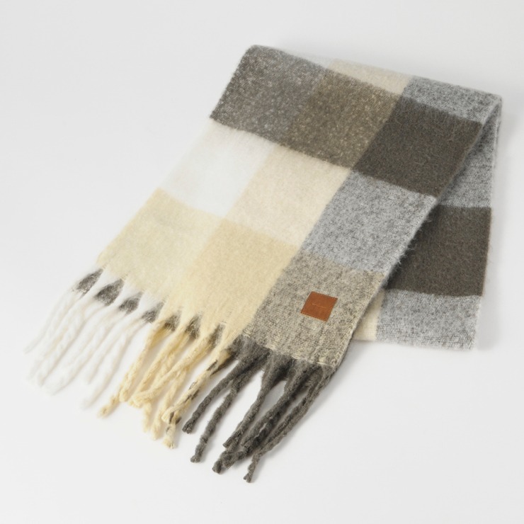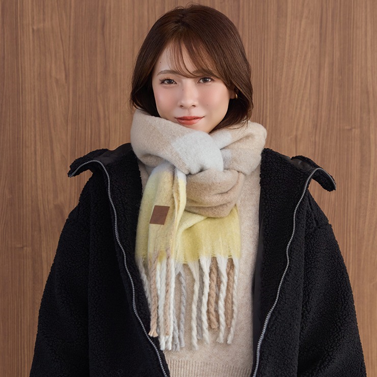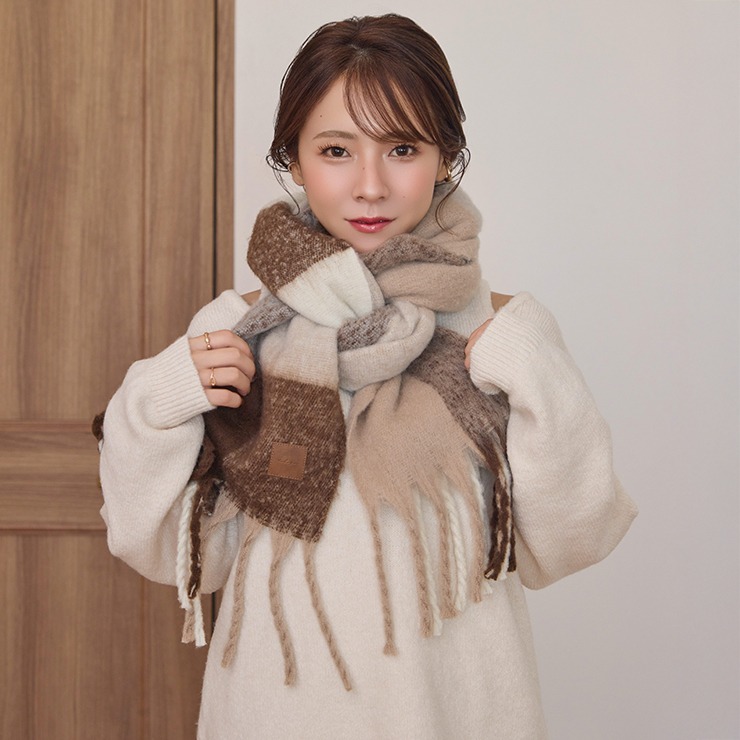 ブロックチェック柄が可愛いく、巻き方次第で表情が変わるのもポイント。