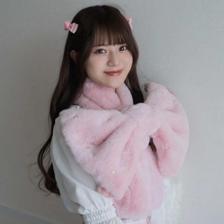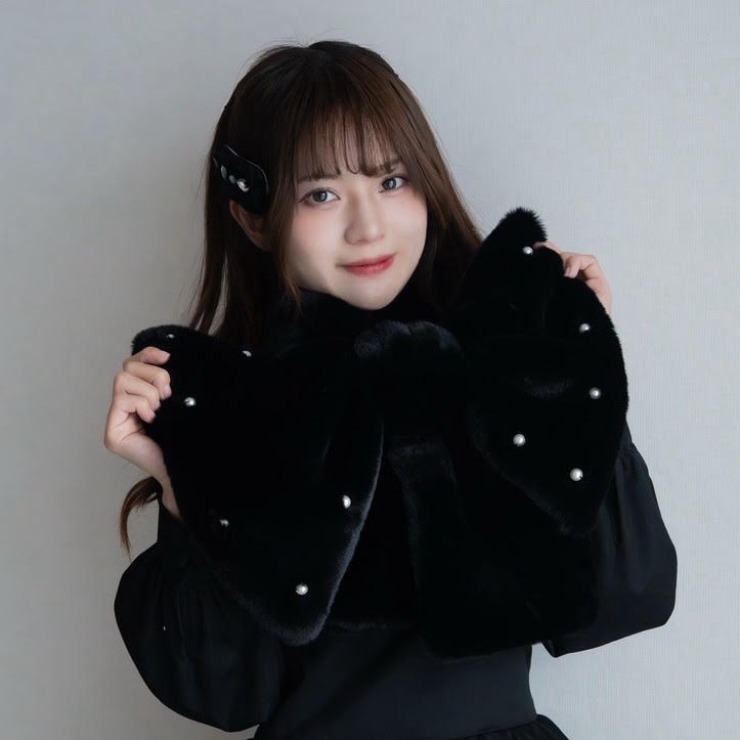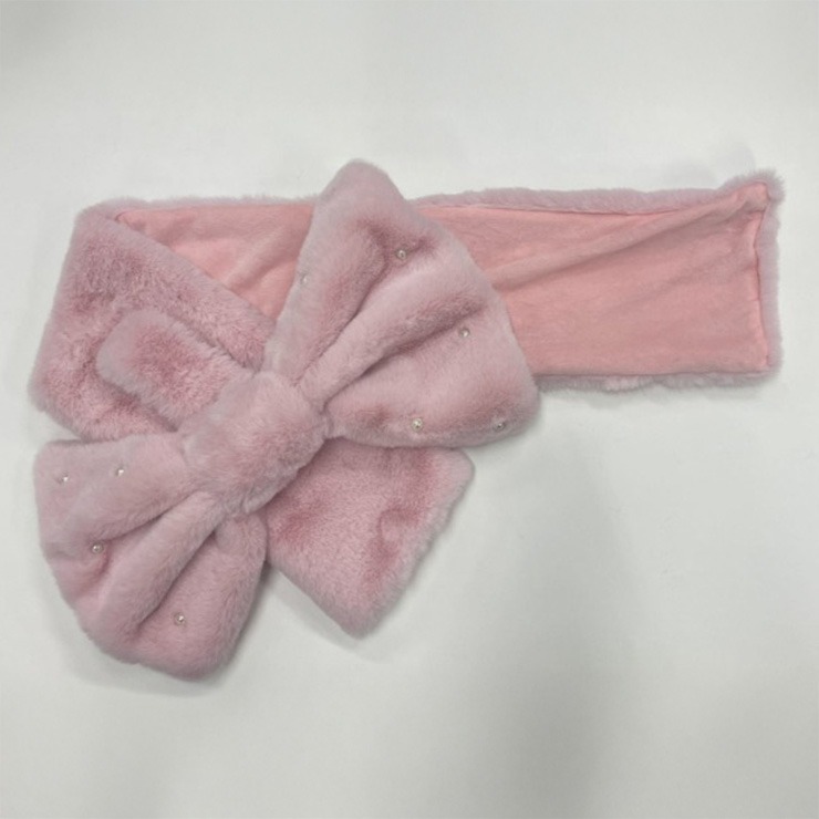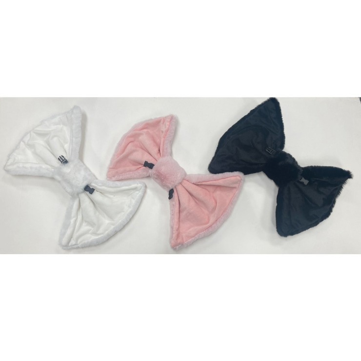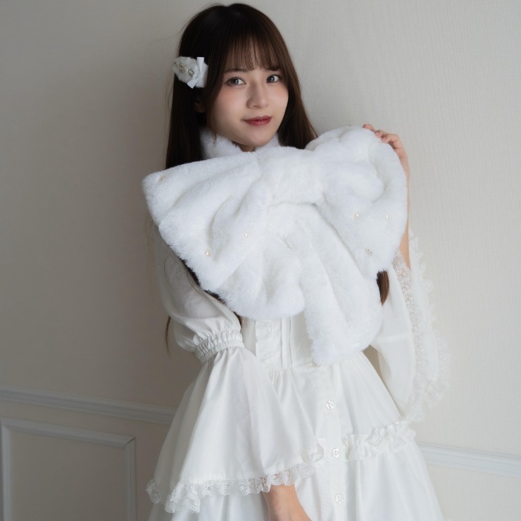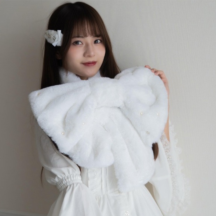 大きなリボンがポイントで、ふわふわ素材があったかく、冬のファッションに欠かせない