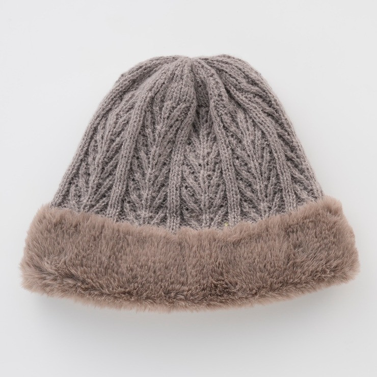 細かいリーフ柄編みニットと起毛素材がコンビになったニットワッチです。
