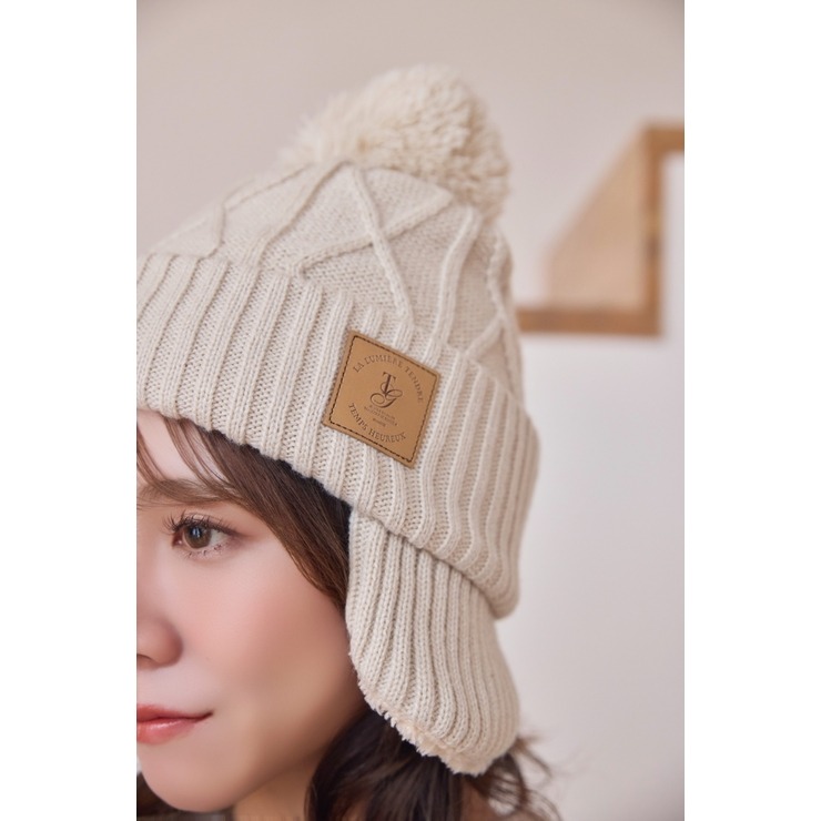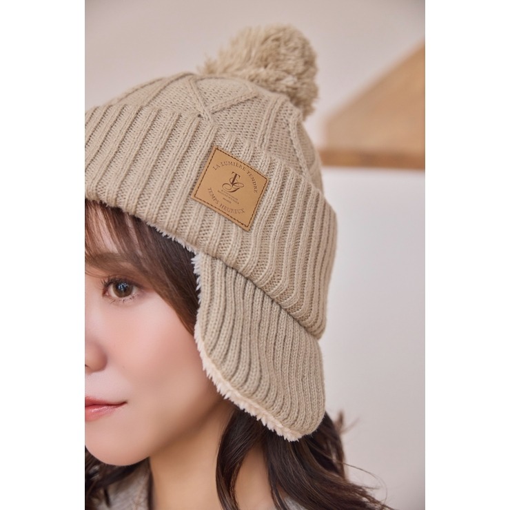 レディース 耳付きニットワッチ(yumi) ベージュ 214 ベージュ 214