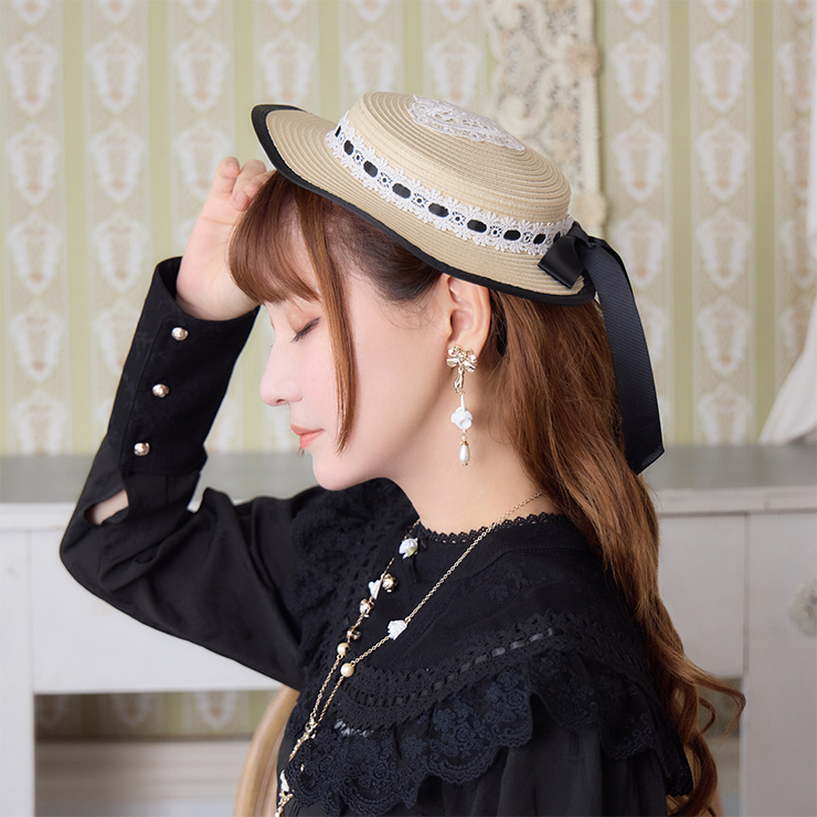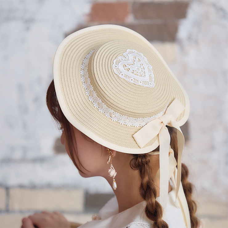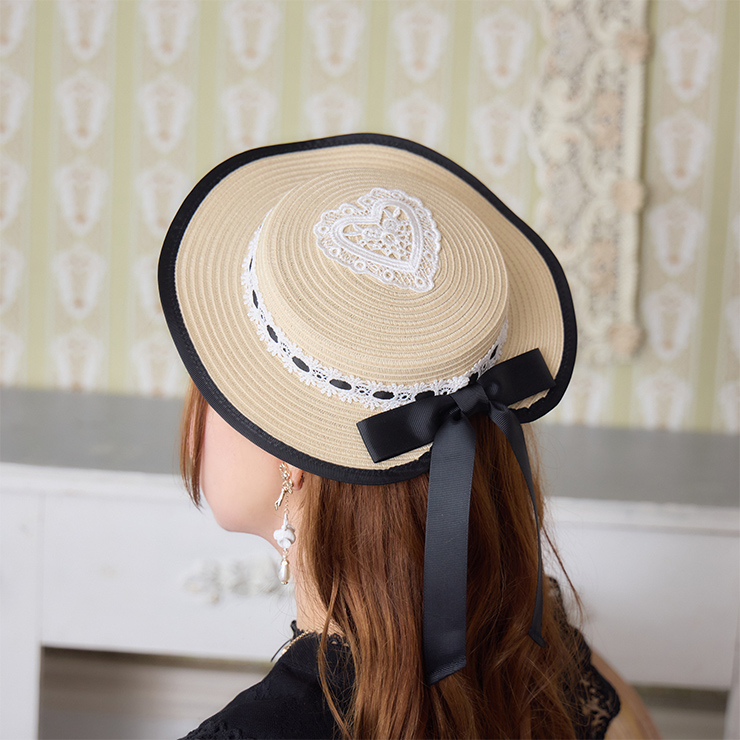夏らしい素材感のキャノティエ、ハート型レースが可愛いアイテムです
