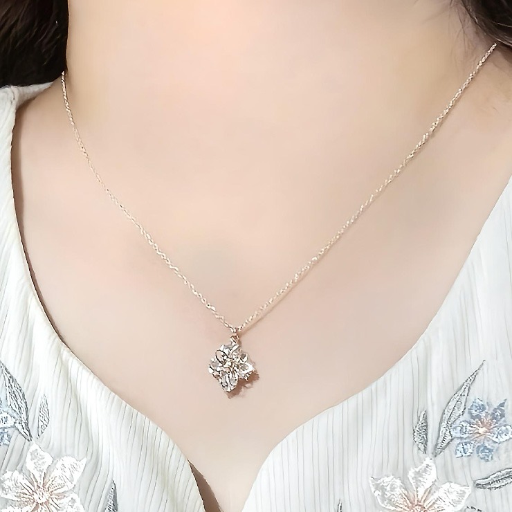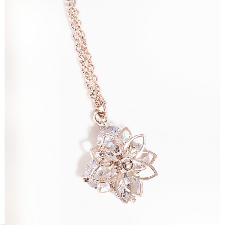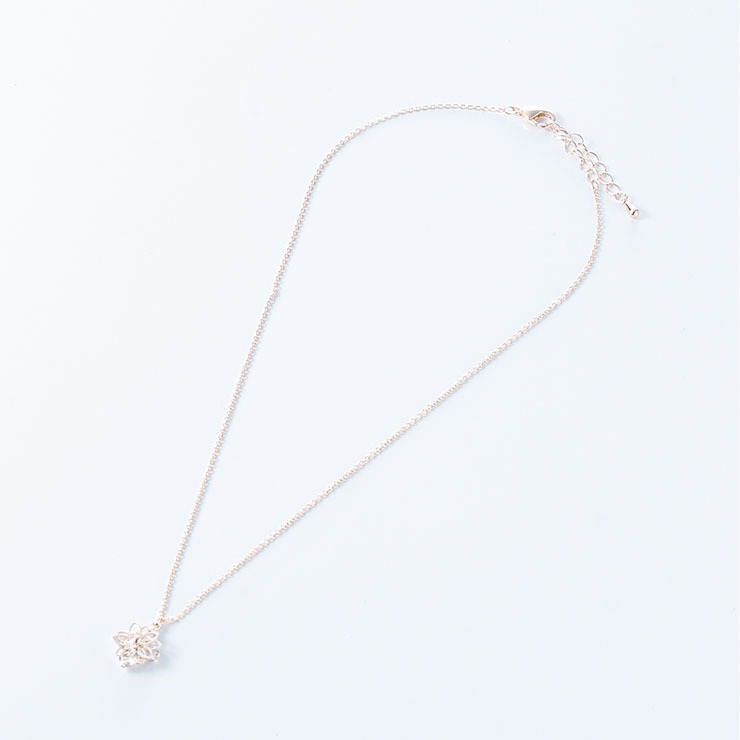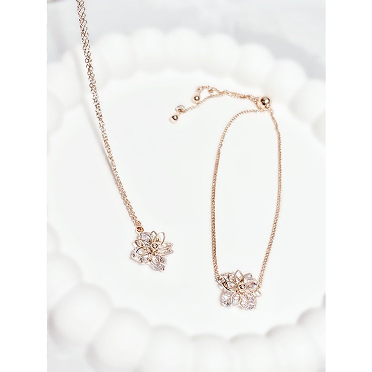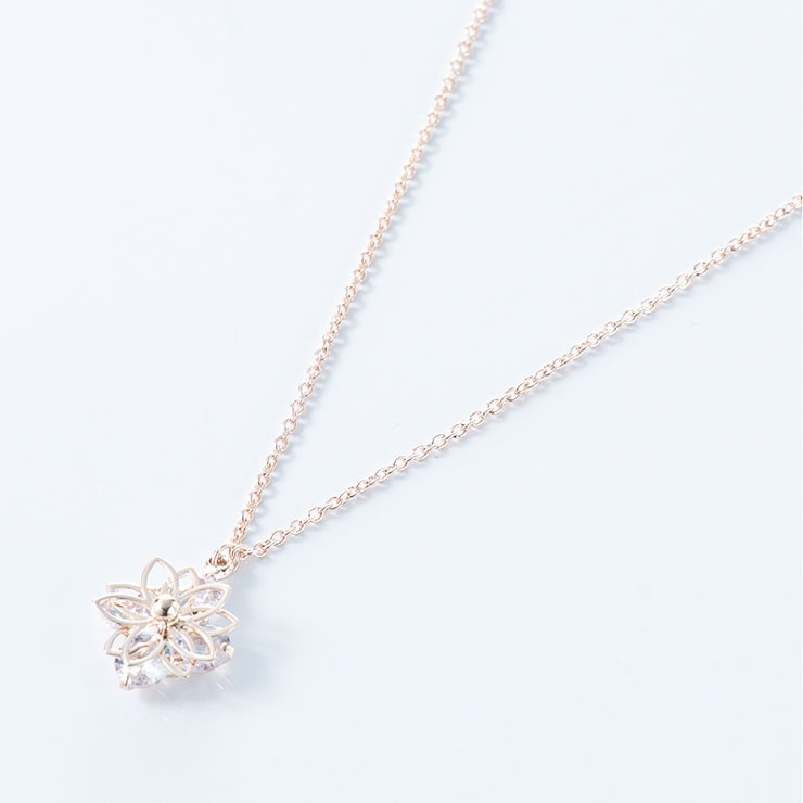 キュービックジルコニアがキラキラ輝くフラワーモチーフのネックレス。胸元をぱっと華やかにしてくれます♪優しいピンクシルバーメッキがお肌馴染みが良い上品なカラーです!