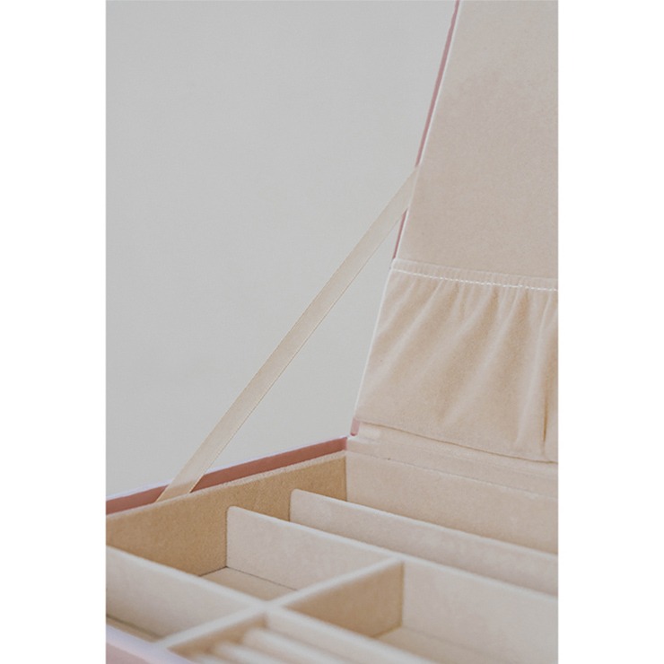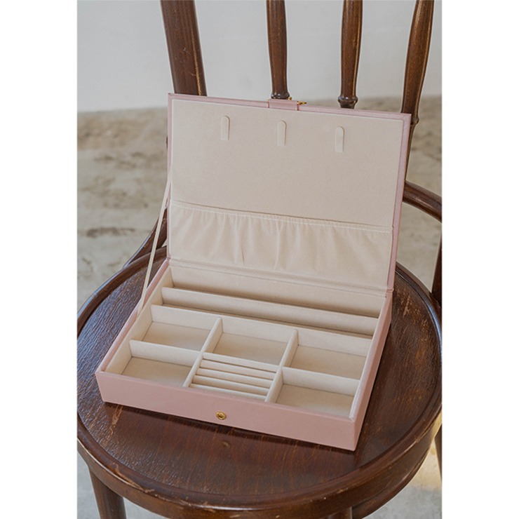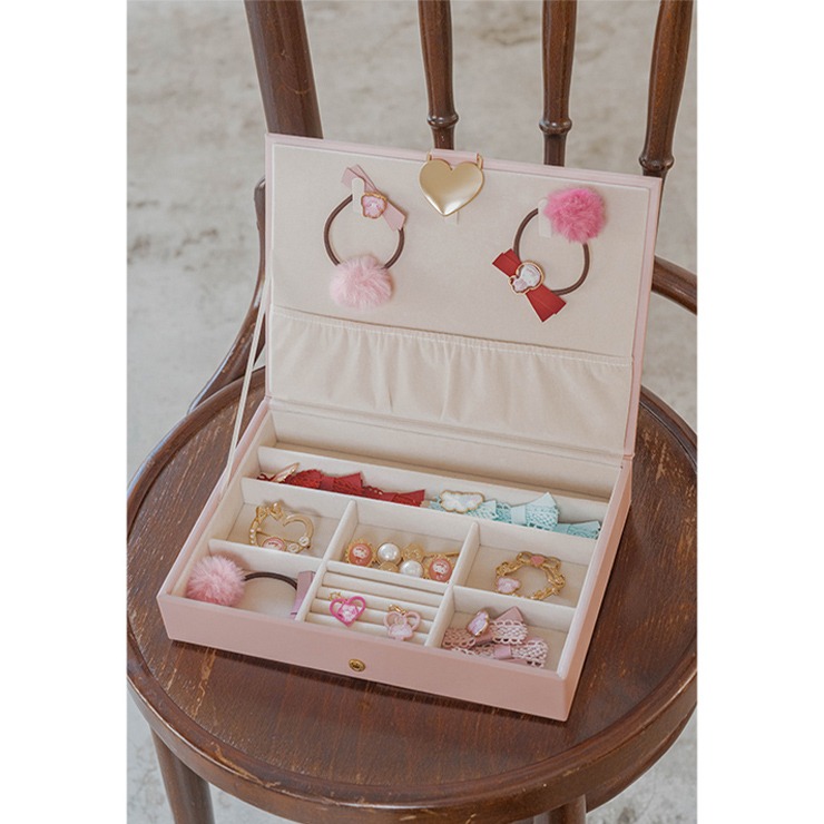 ずらっとアクセサリーを収納することが出来るアクセサリーボックスで、仕切りの数もしっかりあり、おうちでのアクセサリーの整理にとても便利です。