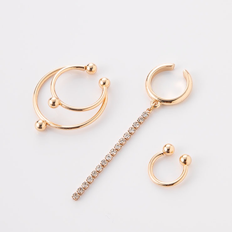 2連に見えるデザインのイヤカフや、ビジューラインが下がるデザインのイヤカフなど単体でも複数でも自由に組み合わせできるアイテムです。