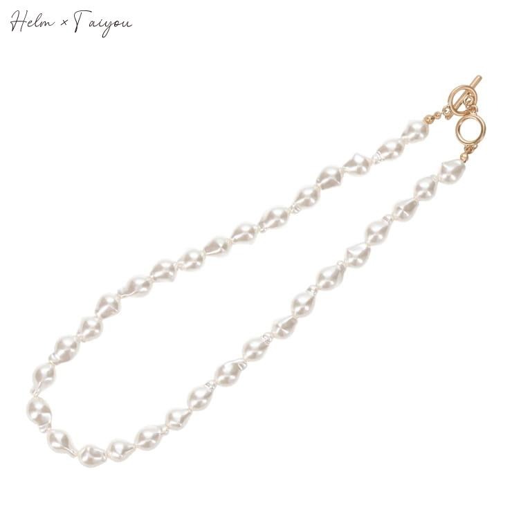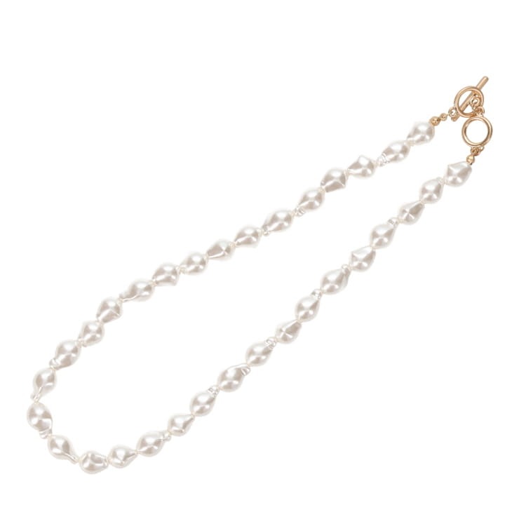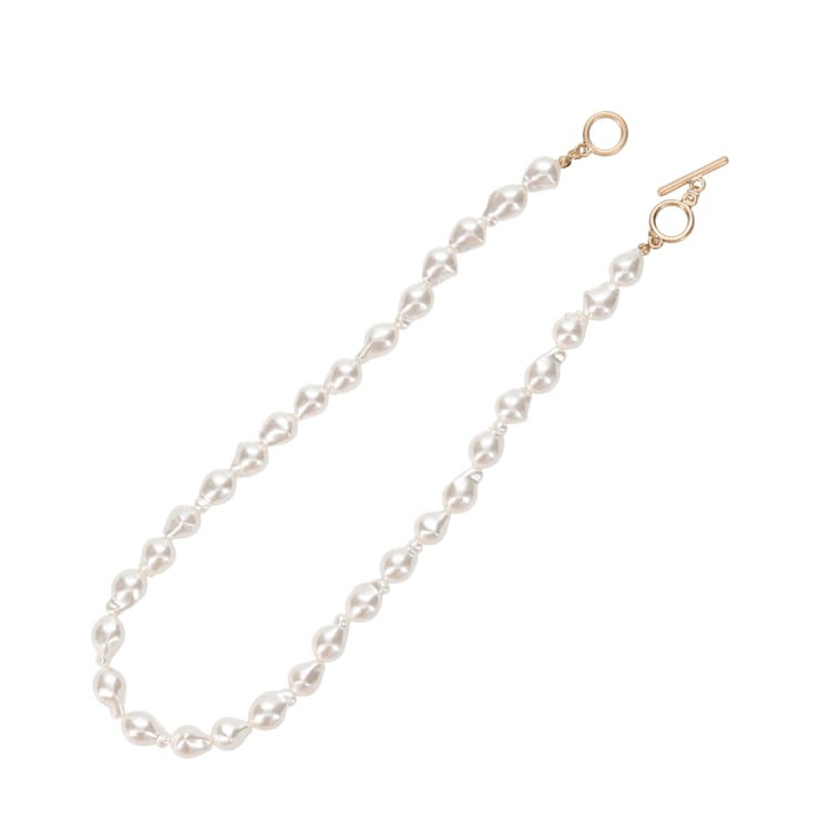 バロックパールとマンテル金具のネックレス。ニュアンスのあるバロックパールがオシャレ感をUPしてくれます♪マンテルリングにお手持ちのテープを通せばロングネックレスとしてもお使いいただけます!