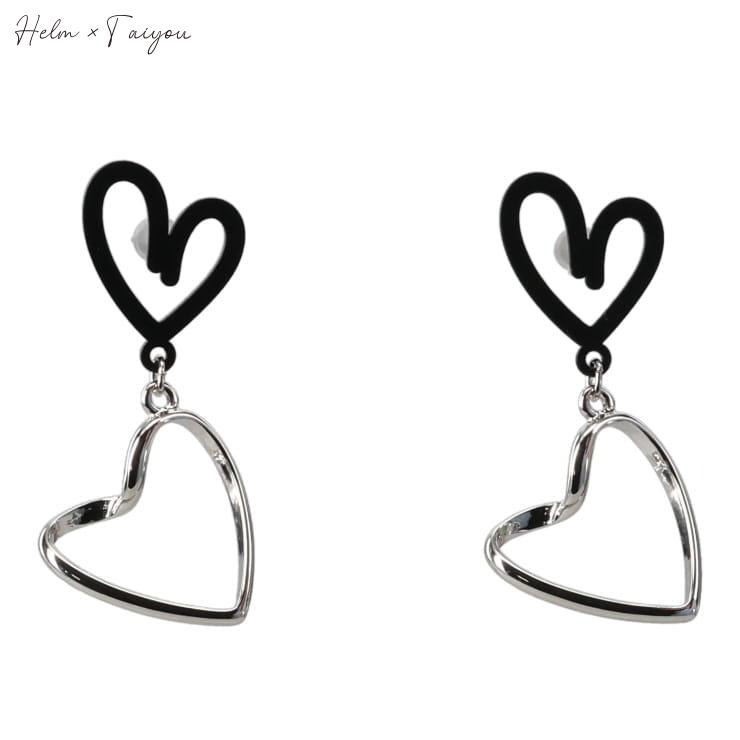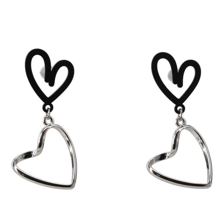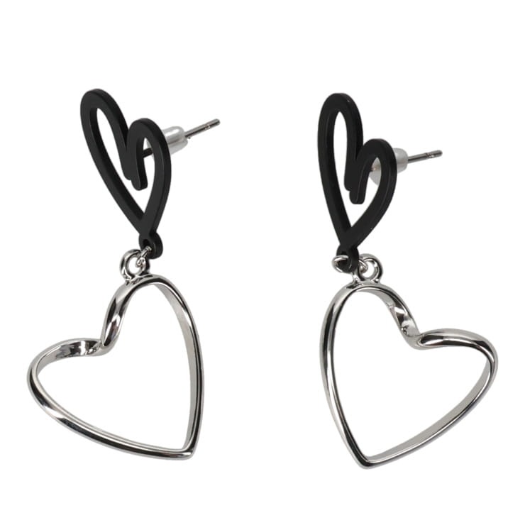 ダブルオープンハートのピアス。ニュアンスのある手書き風ハートとマットブラックカラーで、甘くない大人っぽい辛口ハートに仕上げました♪