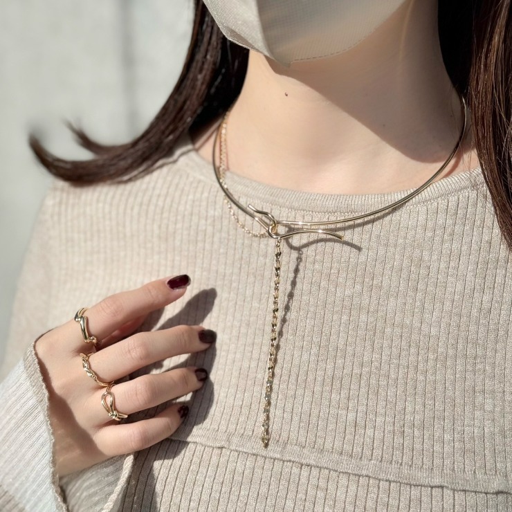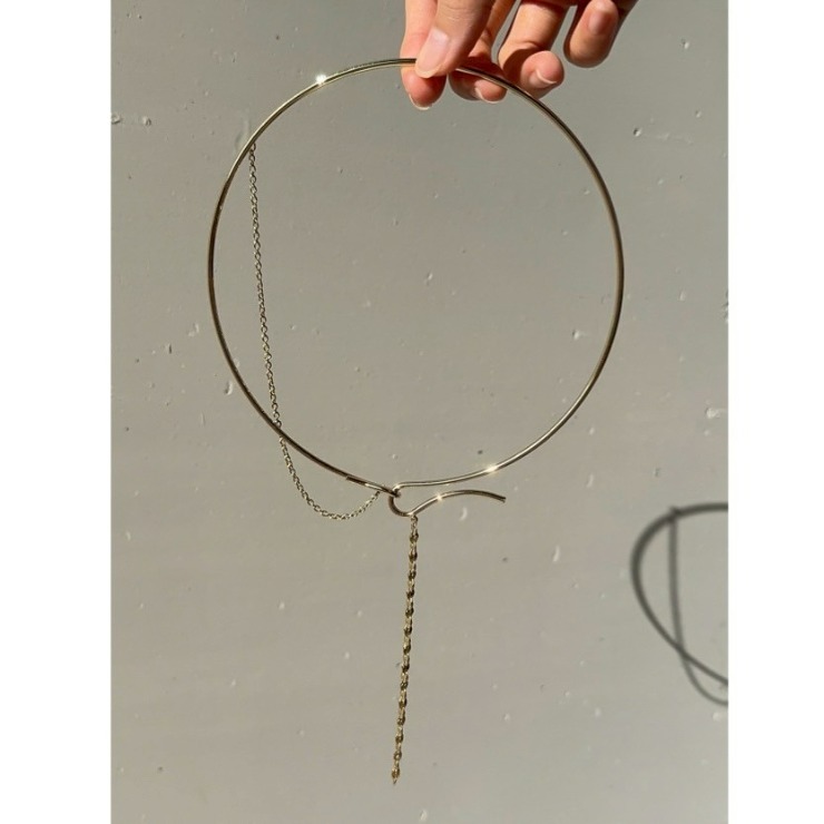 トレンドのメタルチョーカー。アシンメトリーのチェーンが揺れるオシャレなデザインです!コーディネートのポイントにおすすめです♪
