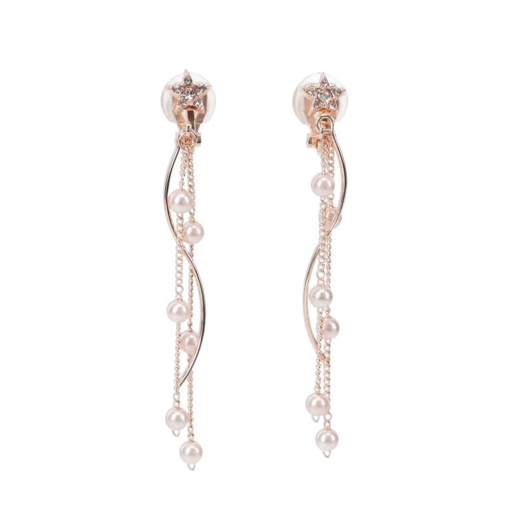 キラキラ輝くガラスストーンの星に、ゆらゆら揺れるパールチェーンとウェーブバーがお顔周りを華やかに彩ってくれます♪
