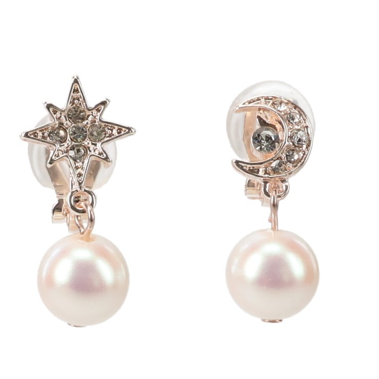 キラキラ輝くガラスストーンの月と星にオーロラピンクパールが高級感のある輝きで、お顔周りを華やかに彩ってくれます♪