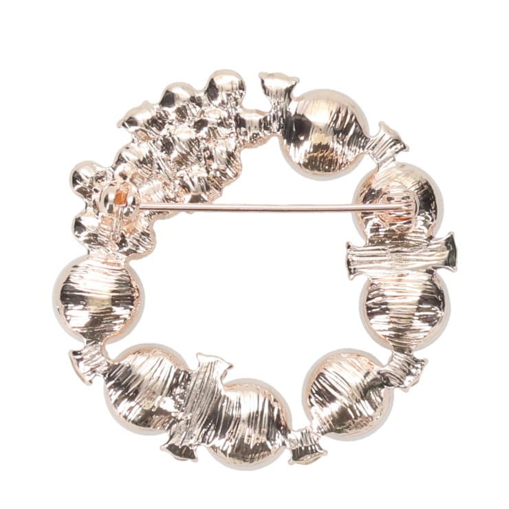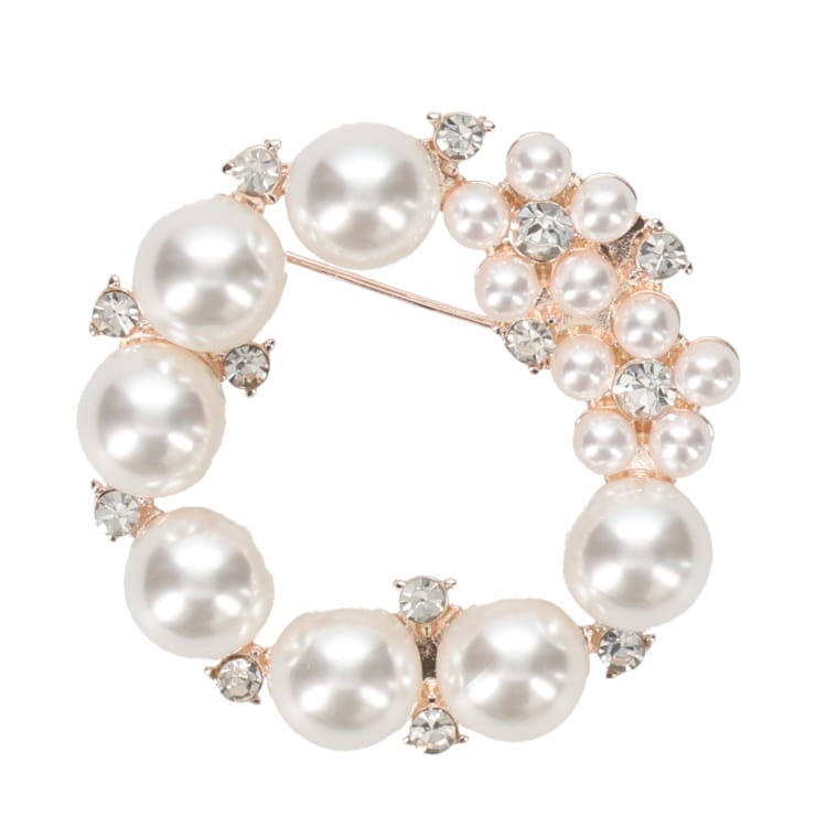 フラワーリースのパールブローチ。