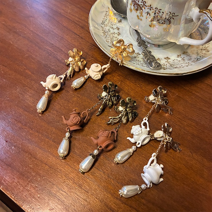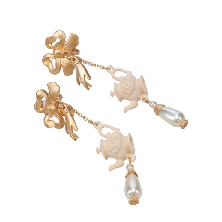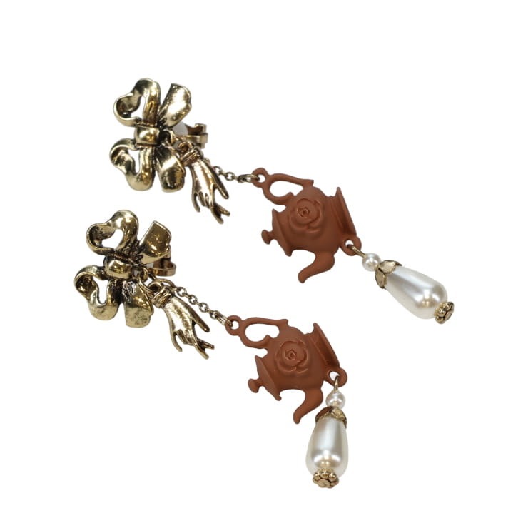 ポットモチーフが揺れるクラシカルな雰囲気のイヤリング。
