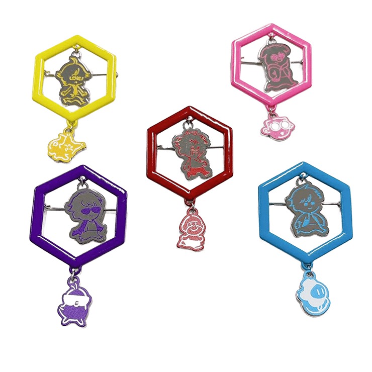 キャラクターをデザインしたブローチとステッカーコンプリートセット。