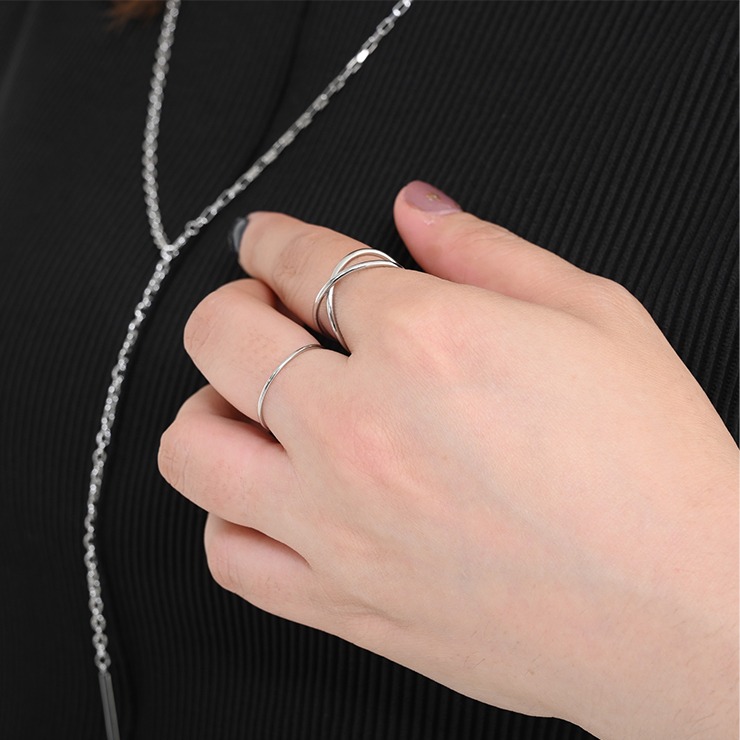 クロスのお洒落なリングと細いリングは単体でも複数でも組み合わせていただけるアイテムです。