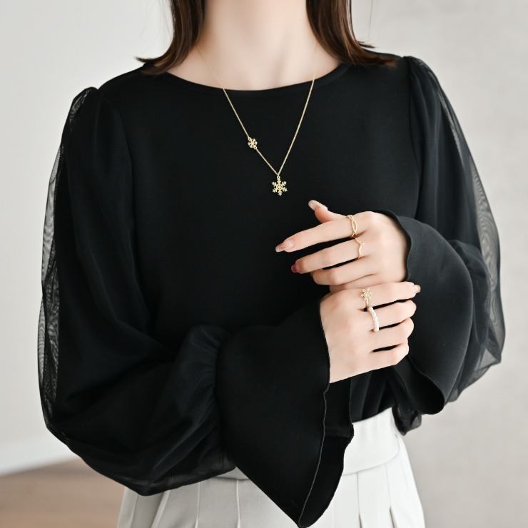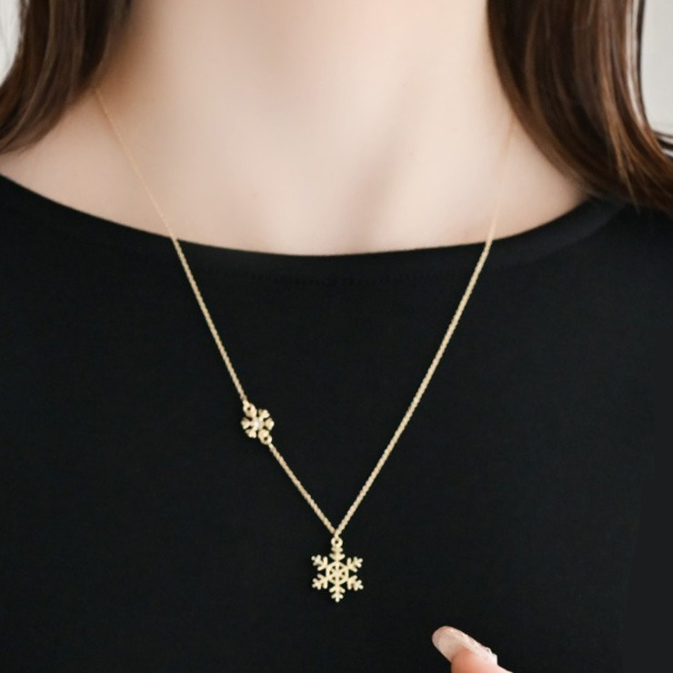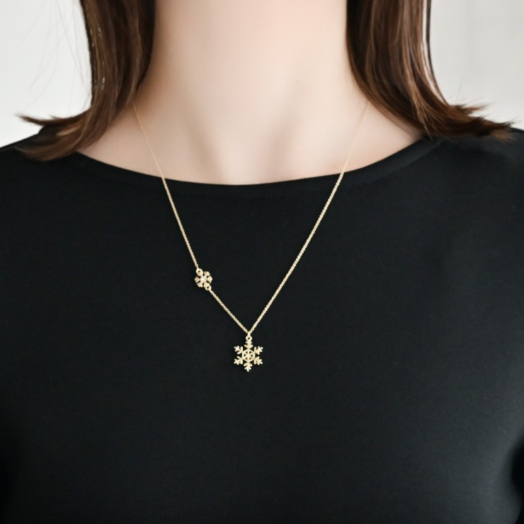スノーモチーフが冬らしいネックレス。ストーンがキラキラ輝く雪の結晶とチェーンの途中にあるミニスノーモチーフがポイントです♪