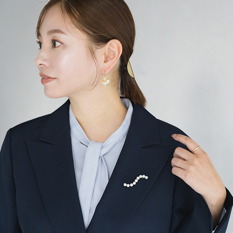 オケージョンにもぴったりなパール使いのブローチ。