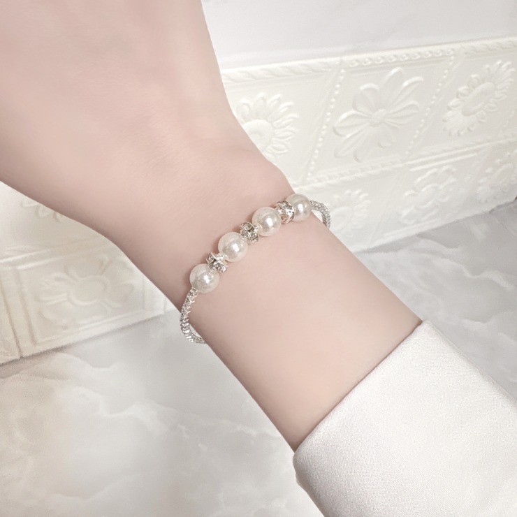 ラインストーンとパールのバングル。