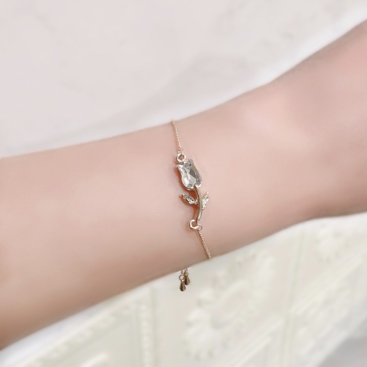 キラキラ輝くクリアストーンが寂しくなりがちな手首周りを華やかに彩ってくれます♪留め金具がなく、スライダーパーツで着脱が簡単なのもストレスフリーで嬉しいポイントです!