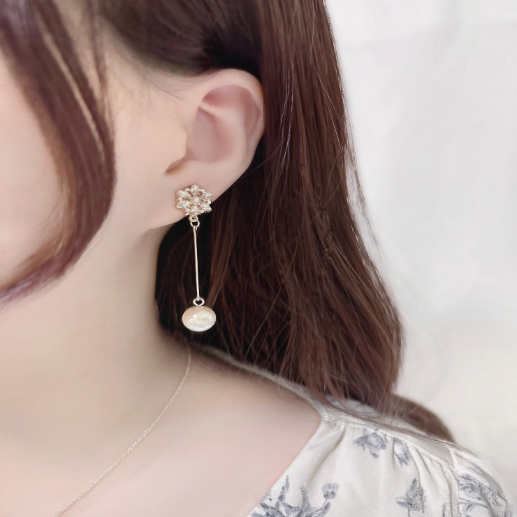 高級感のあるオーロラパールが耳元でゆらゆら揺れて、お顔周りを華やかに彩ってくれます♪