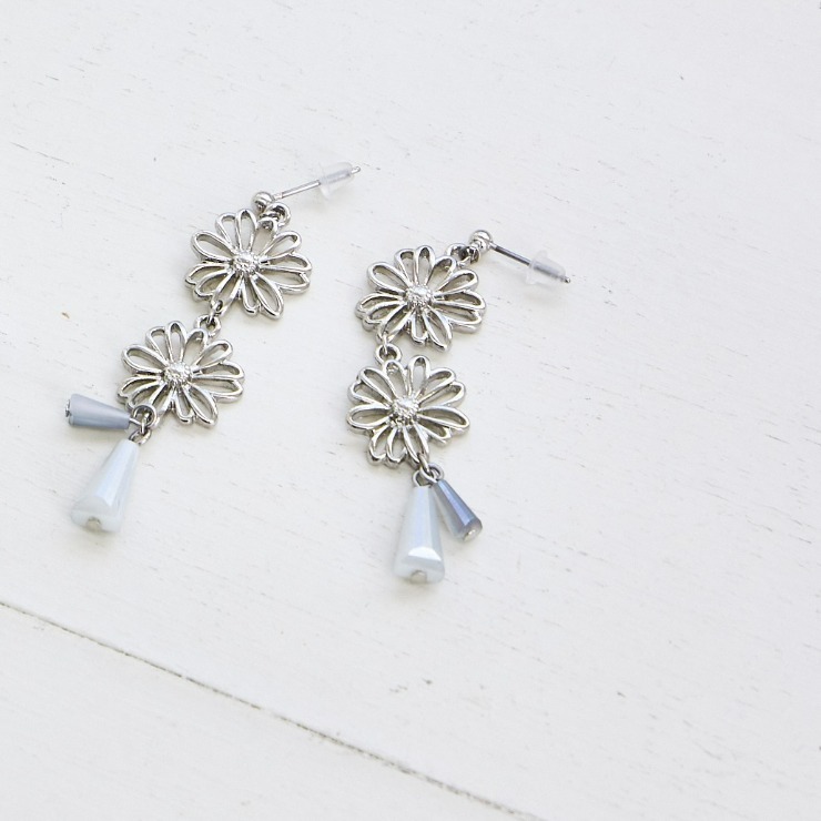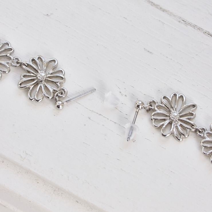 春を先取り出来るメタルフラワーピアス。フラワーなのに甘くなりすぎないデザインとシルバーカラーで辛口なデザインに仕上げました♪オシャレなニュアンスカラーのガラスが耳元でゆらゆら揺れて、お顔周りをぱっと華やかにしてくれます!