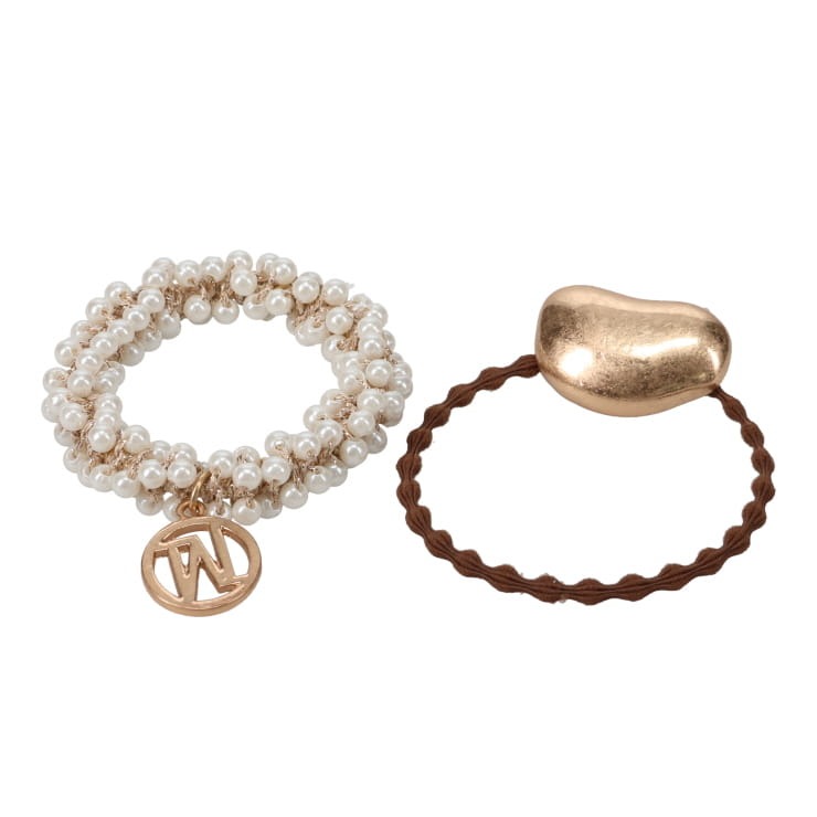 パールやオリジナルロゴプレートをあしらったデザインのポニー2本セット。