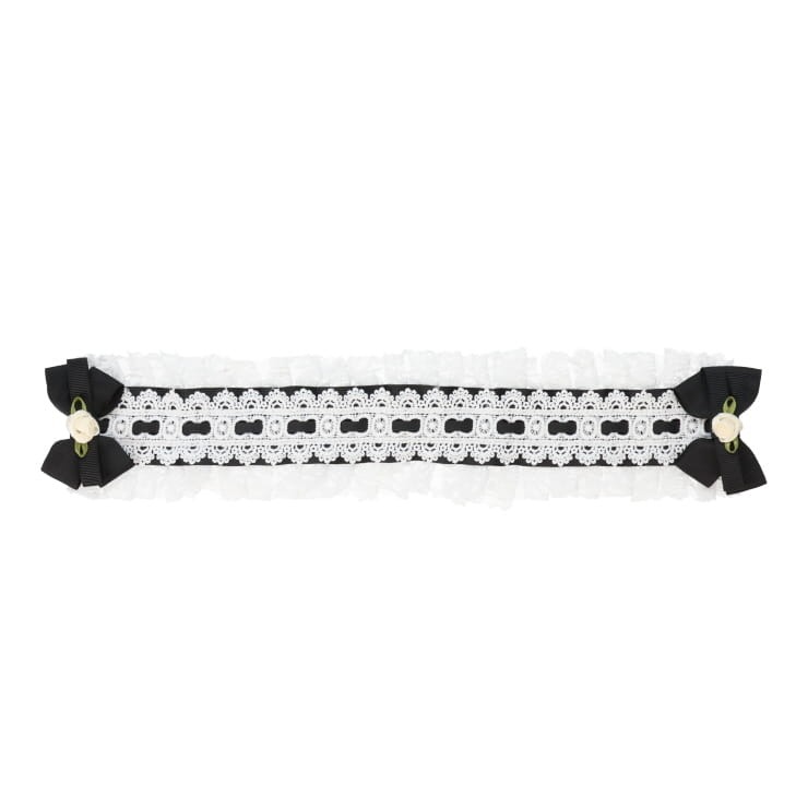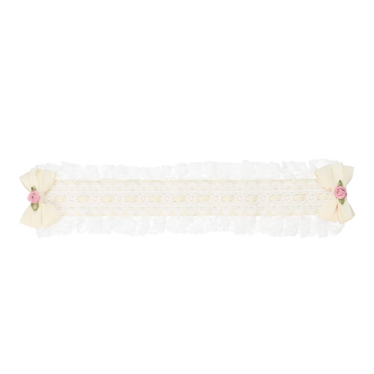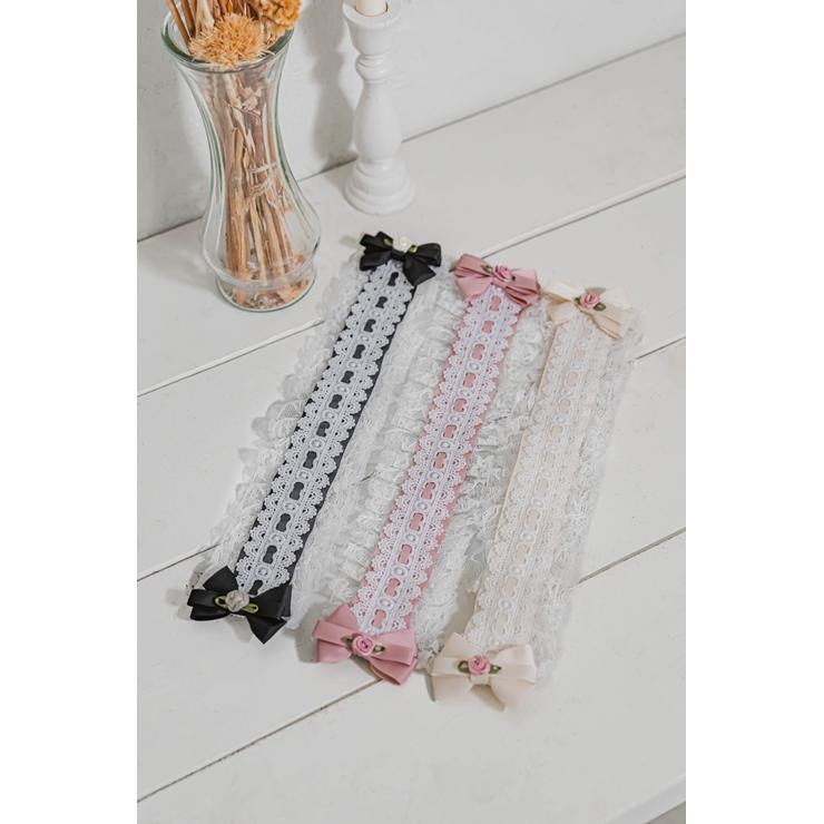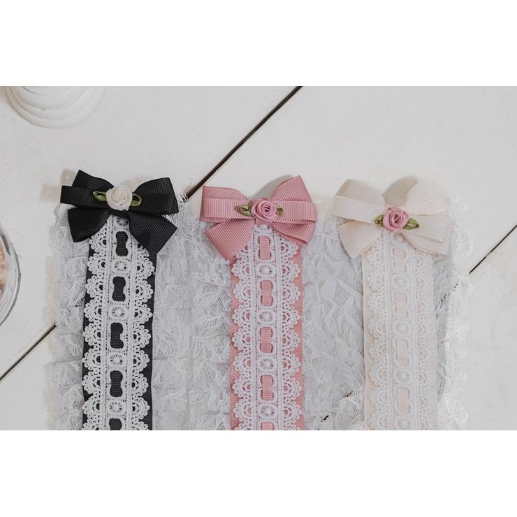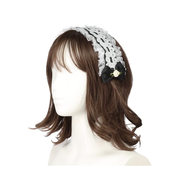 リボンやチュールレースをあしらったデザインのヘッドドレス。