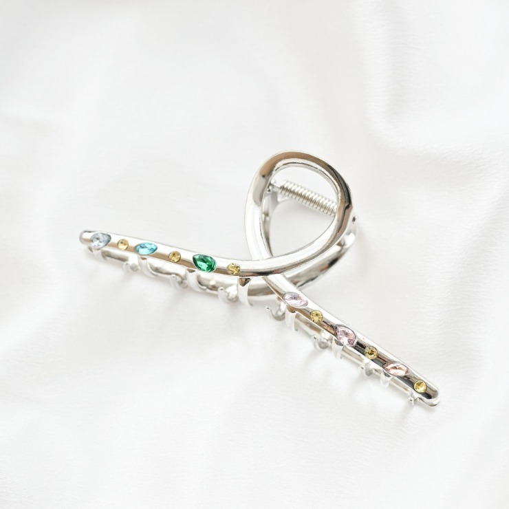 カラーストーンがキラキラ輝くバンスクリップ。マルチカラーのストーンがトレンド感満載です♪髪をさっとまとめるだけで簡単にヘアスタイルをオシャレにしてくれる便利なアイテムです!