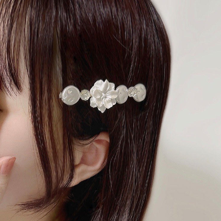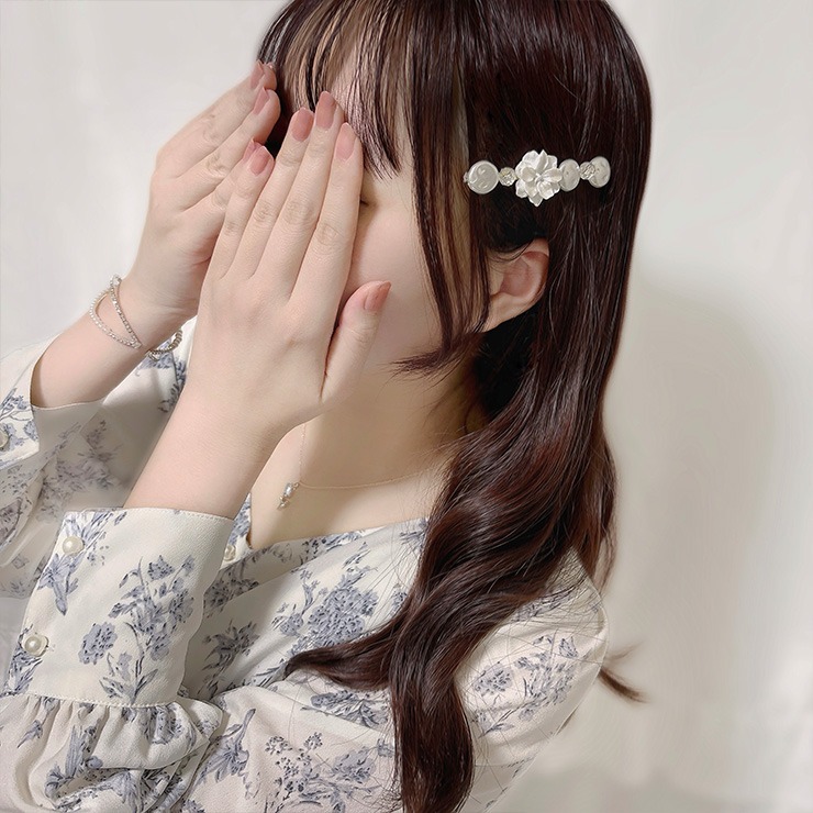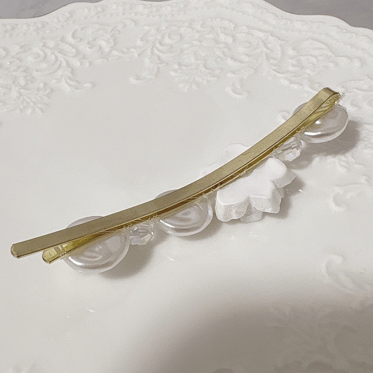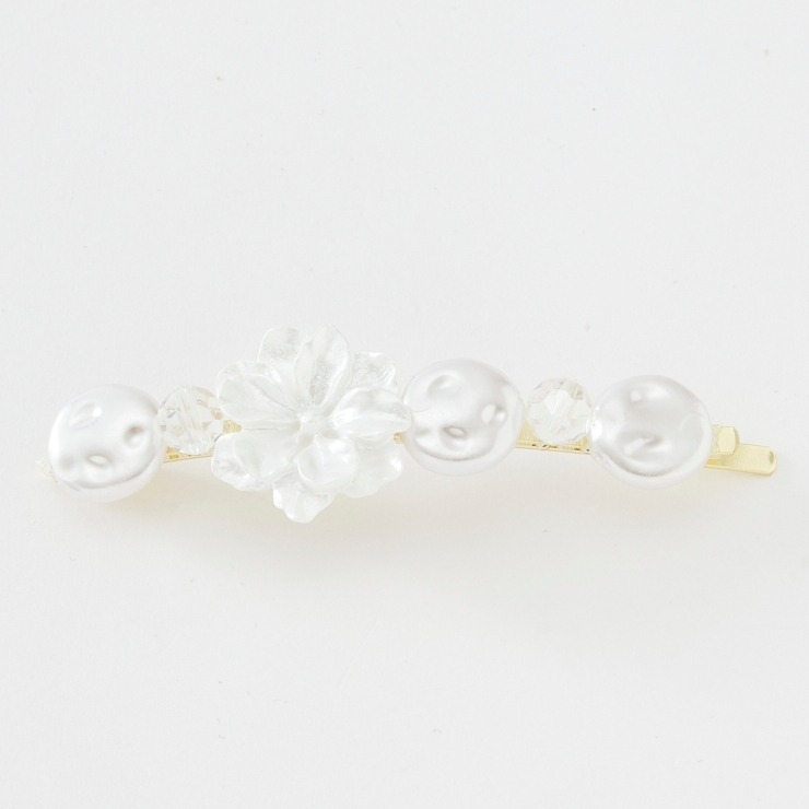 カットガラスとパールがキラキラ輝き、高級感のあるデザインに仕上げました♪留めるだけで簡単にヘアスタイルをオシャレにしてくれる便利なアイテムです!さりげないサイズ感で、デイリーにはもちろんフォーマルなシーンにもオススメです!