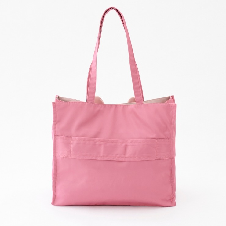 トートバッグは背面はキャリーケースに通せる仕様なので、キャリーの上に置くことができて便利です。