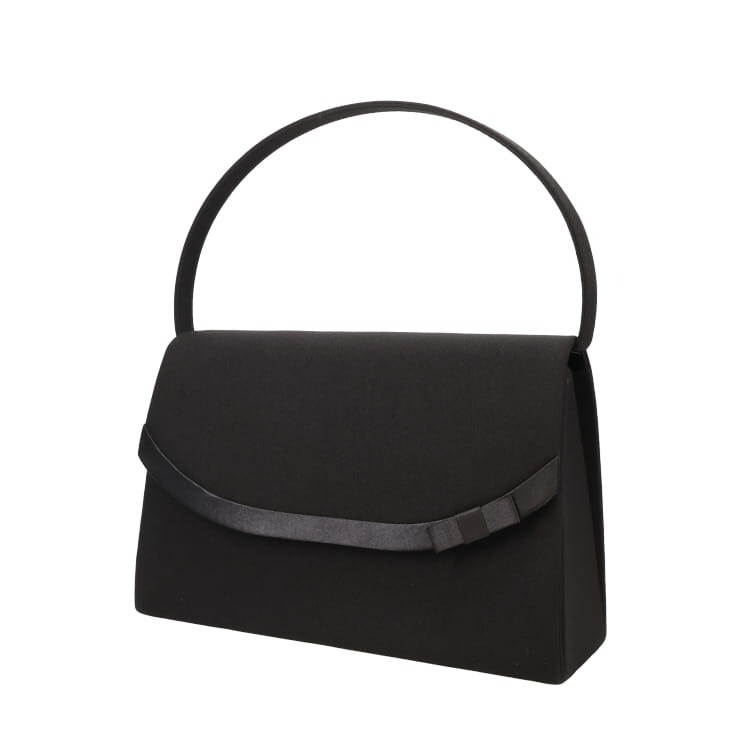 ワンポイントのリボンがさり気なく女性らしい可愛らしさを演出するフォーマルバッグ。