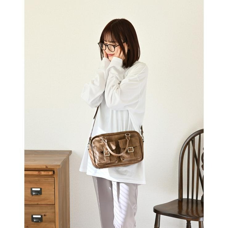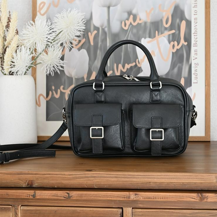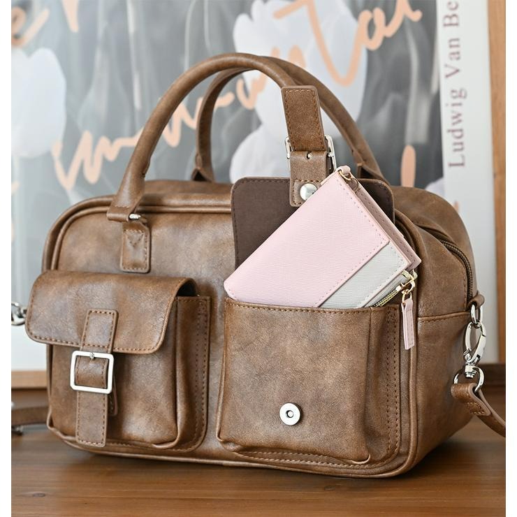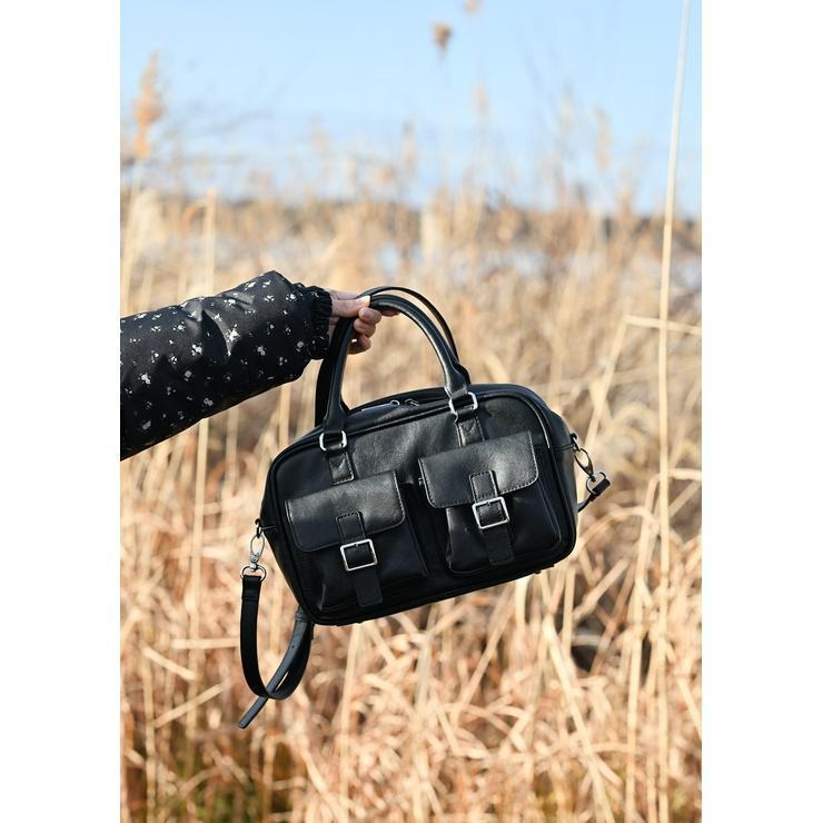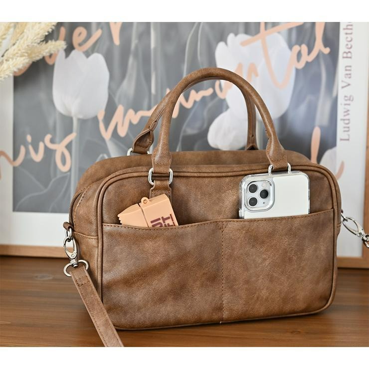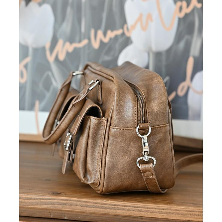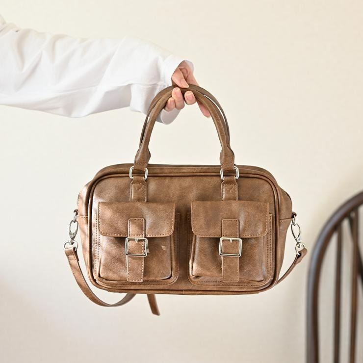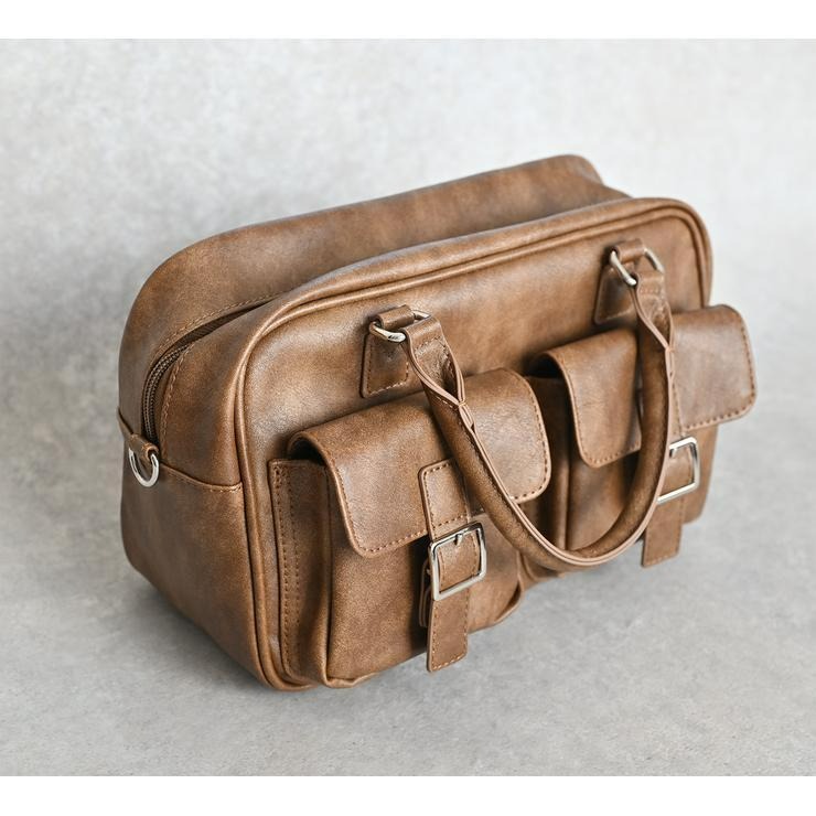 アンティーク調の素材にダブルポケットと横長のフォルムが可愛いボストンバッグ!